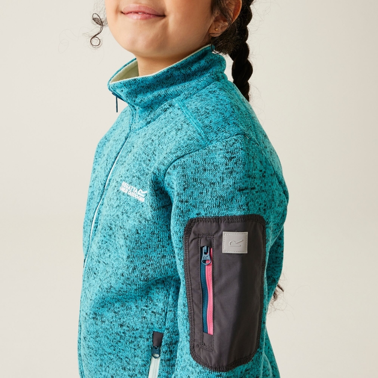 Coole Fleece-Jacke für aktive Kids! Die Regatta Newhill ist aus 100% recyceltem Polyester gemacht - gut für die Umwelt und super weich auf der Haut. Mit 250 GSM ist sie schön warm, aber nicht zu dick. Praktische Features: Reflektierende Streifen für bessere Sichtbarkeit, Stehkragen gegen Zugluft, und mehrere Taschen für alle Schätze. Der durchgehende Reißverschluss und die Stretch-Bündchen sorgen für perfekten Sitz. In Größe 9-10 Years passt sie ideal für Schulkinder. Perfekt für Herbst und Winter - ob für den Schulweg, Spielplatz oder Familienausflug. Nachhaltig, praktisch und total bequem - was will man mehr?