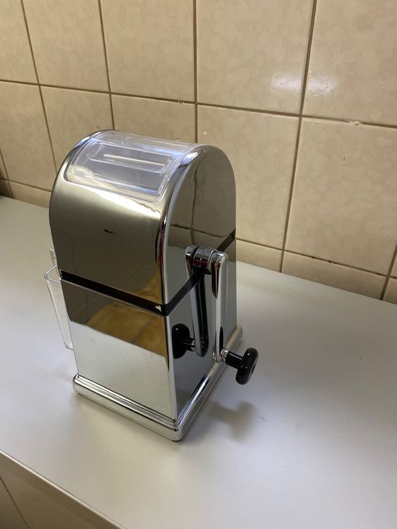 Perfekt für deine Home-Bar! Dieser Jago Eiscrusher verwandelt Eiswürfel in sekundenschnelle in perfekt zerstoßenes Eis für Cocktails und Erfrischungsgetränke. Einfach Eis oben rein, an der Kurbel drehen und fertig ist das crushed ice! Das Mahlwerk aus robustem Edelstahl zerkleinert das Eis gleichmäßig. Mit praktischem Auffangbecher und Schaufel - super hygienisch. Das weiße verchromte Design sieht dazu noch richtig stylisch aus. Ob für Mojitos, Caipirinhas oder eisgekühlte Getränke - damit wird jede Party zum Hit!