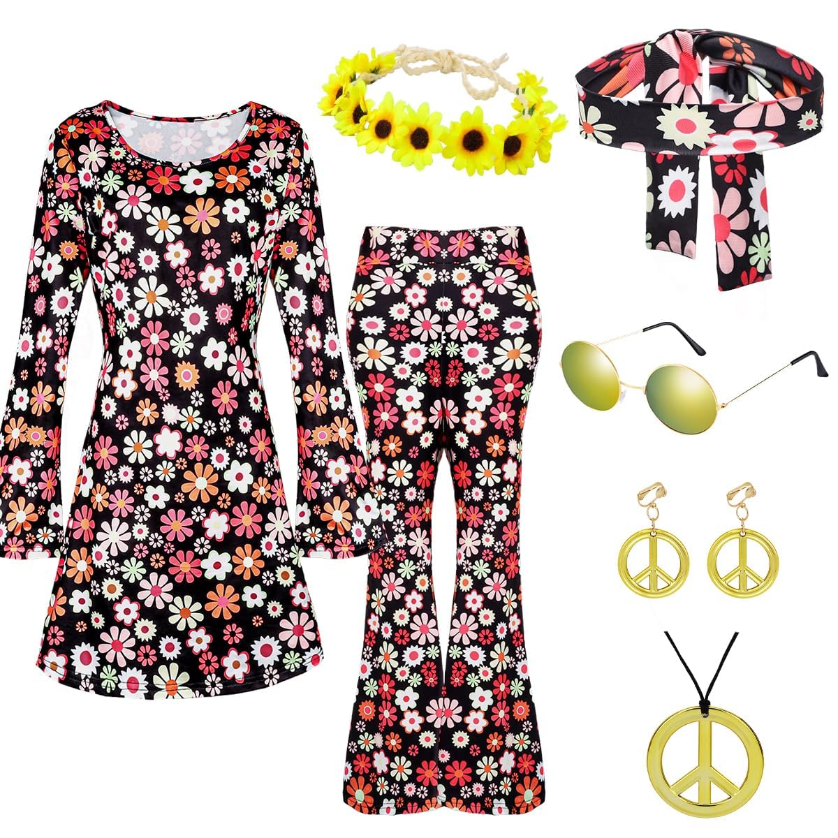 Timewarp back to the 70s! Dieses coole Hippie Kostüm bringt Peace-and-Love-Feeling auf jede Party. Enthält ein buntes Paisley-Kleid, braune Weste und stylisches Stirnband. Aus atmungsaktiven, dehnbaren Materialien - superbequem zu tragen. In 5 Größen von S bis XXL erhältlich. Perfekt für Karneval, Halloween, Schlagermove oder 70er Jahre Partys. Die verstärkten Nähte machen es langlebig für häufigen Gebrauch. Einfach anziehen und dich wie in den wilden 70ern fühlen - flower power pur! Nur Handwäsche, damit die Farben lange knallig bleiben. Dein Ticket für die beste Retro-Party!
