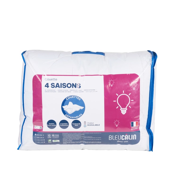 Die perfekte Decke für das ganze Jahr! Die Traumnacht 5-Star 4-Jahreszeiten Bettdecke besteht aus 2 einzelnen Decken: einer leichten Sommerdecke und einer wärmeren Ganzjahresdecke. Bezug aus weichem Baumwoll-Satin (100% Baumwolle) - super atmungsaktiv und angenehm auf der Haut. Füllung aus 100% Komfort-Polyester Klima-Fasern mit Öko-Tex Zertifikat. Hochwertige Körperzonensteppung für optimalen Schlafkomfort. Waschbar bis 60°C, auch für den Trockner geeignet (kein Weichspüler!). Transportiert Feuchtigkeit super weg für ein trockenes Schlafklima. Maße: 135x200cm. Farbe: Weiß. Perfekt für alle, die je nach Jahreszeit die richtige Wärme brauchen. Erholsamer Schlaf garantiert - ob im heißen Sommer oder kalten Winter!