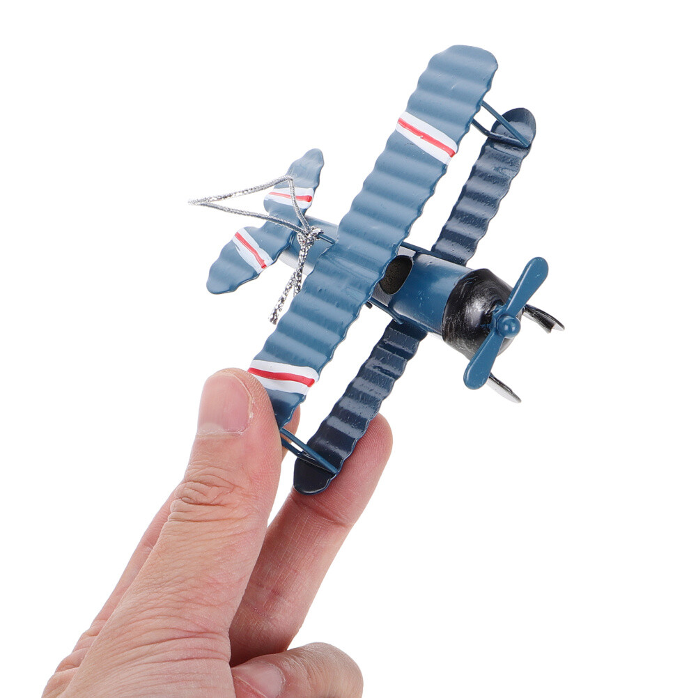 Jeanoko Vintage Flugzeug Ornament - Metall Doppeldecker Deko 10x9x5cm Rot