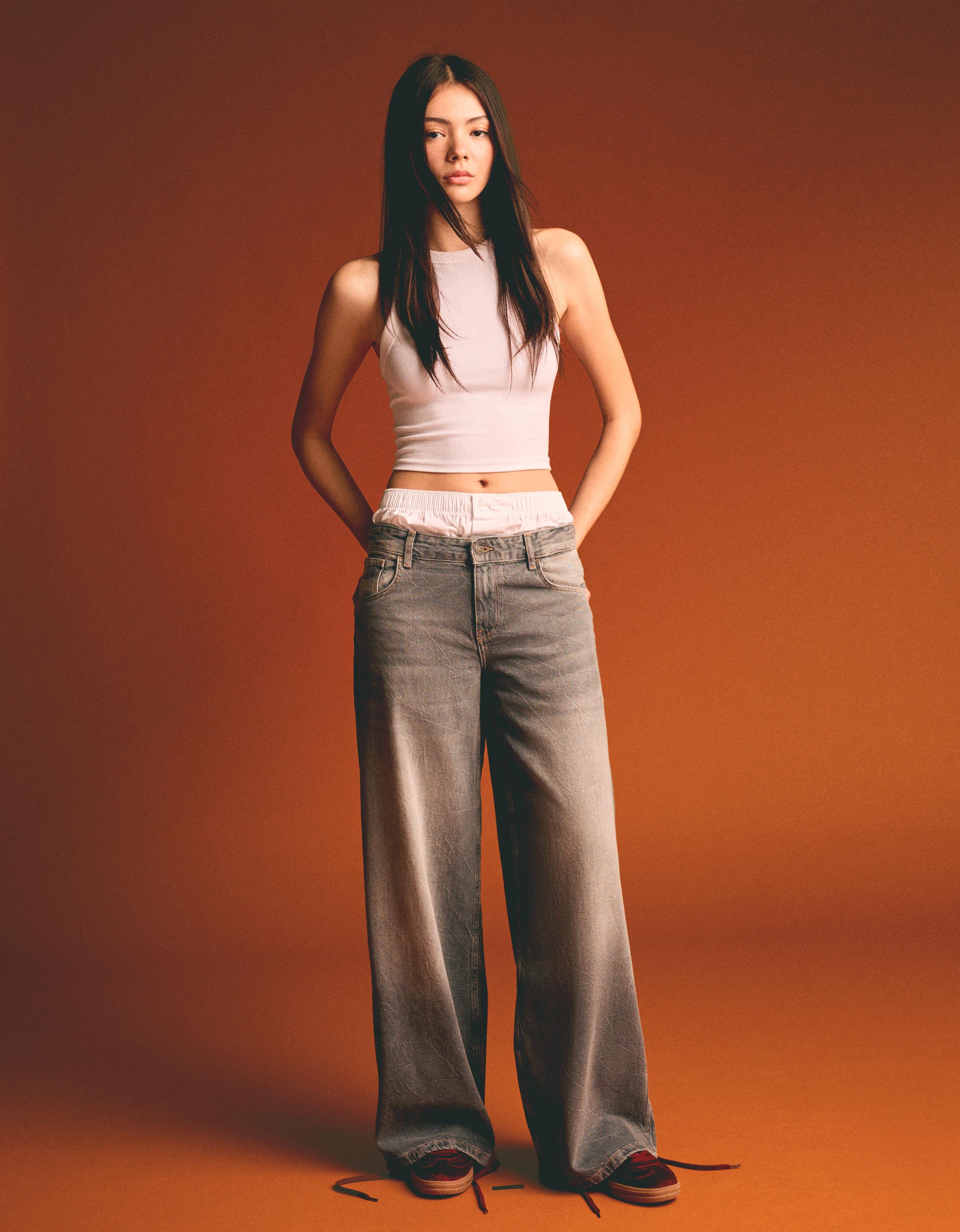 • POIUIYQA Leoparden Jeans Baggy - Y2K Style Low Waist Hose In Hellbraun