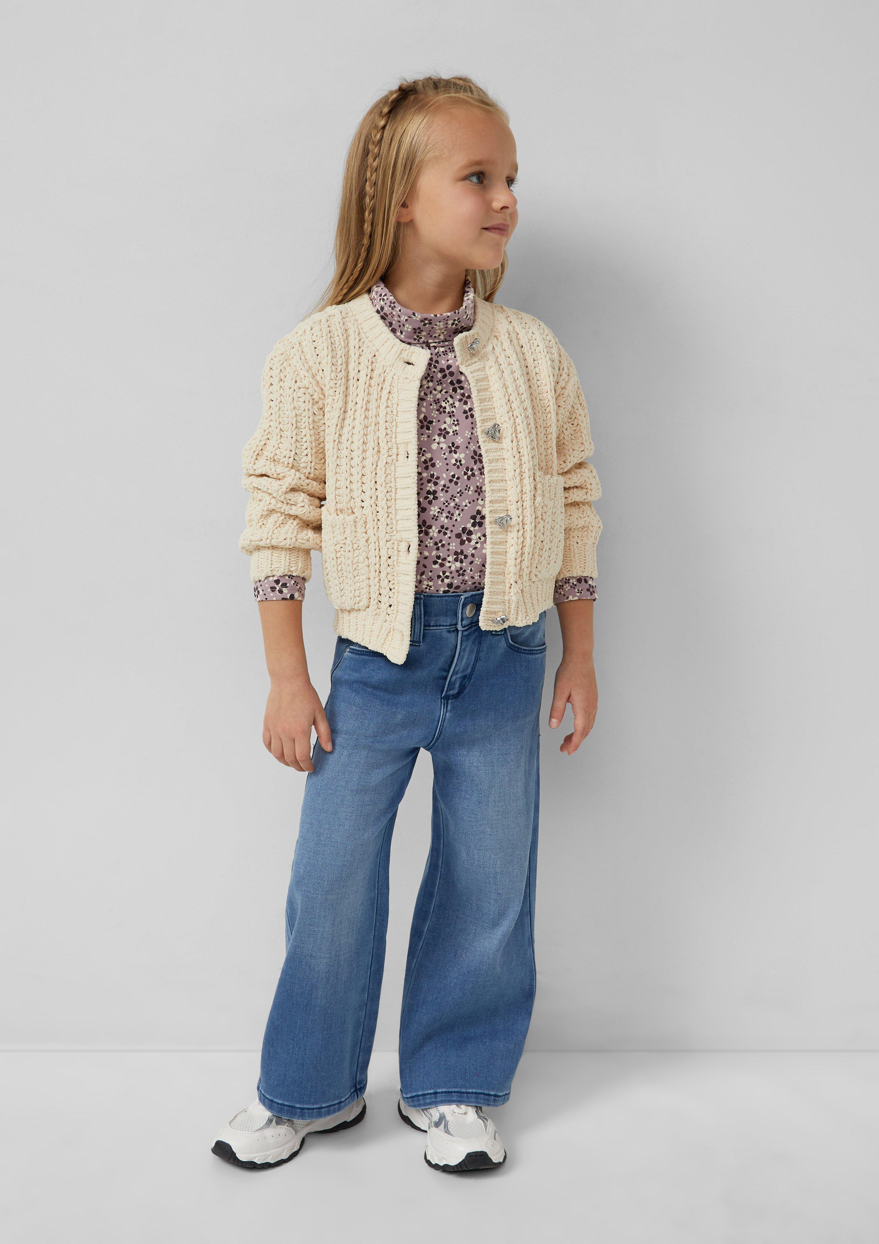 Coole Jeans für Mädchen von s.Oliver! Der Regular Fit sitzt super bequem und die flared, also unten etwas weitere Passform, ist total im Trend. Perfekt für Schule, Spielplatz oder einfach für den Alltag. Die Jeans ist aus strapazierfähigem Denim und hält auch wilden Spielaktionen stand. Ein echter Klassiker, der sich mit allem kombinieren lässt - ob mit T-Shirt, Bluse oder Pullover. Ein Must-have in jedem Mädchen-Kleiderschrank! Die Waschung ist zeitlos und die Qualität überzeugt. Deine Tochter wird diese lässige Hose lieben und sie am liebsten jeden Tag tragen wollen. Einfach anziehen und sich wohlfühlen - so geht modischer Komfort für Kids!