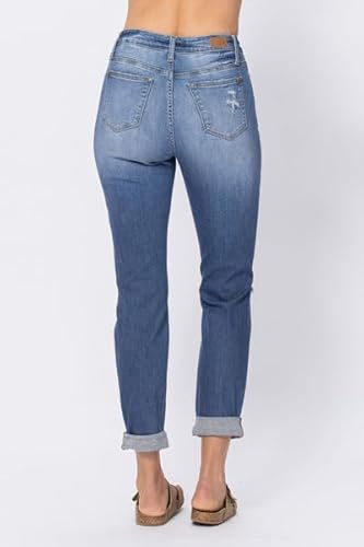Diese Judy Blue Boyfriend Jeans ist einfach mega bequem und sieht dabei total lässig aus! Mit ihrer mittelhohen Taille sitzt sie perfekt und die umgeschlagenen Bündchen geben ihr diesen coolen, entspannten Vibe. Die dezent verwaschene Optik und die gestickten Gesäßtaschen machen sie zu etwas Besonderem. Aus 93% Baumwolle, 6% Polyester und 1% Elasthan gefertigt, gibt sie angenehm nach und ist super bequem. Perfekt zu Sneakers oder flachen Schuhen für den Alltag. Tipp: Nimm am besten eine Größe kleiner als normal, wenn du es taillierter magst. Die Leibhöhe beträgt 24,5 cm und die Schrittlänge 71,1 cm mit bzw. 78,7 cm ohne umgeschlagene Bündchen. Ein echter Allrounder für jeden Tag!