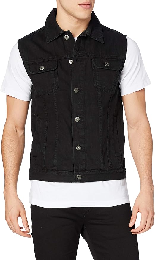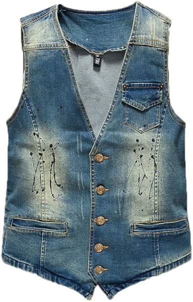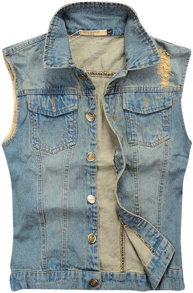 Herren Denim Weste Zerrissen - Jeansweste Vintage Style Mit Taschen