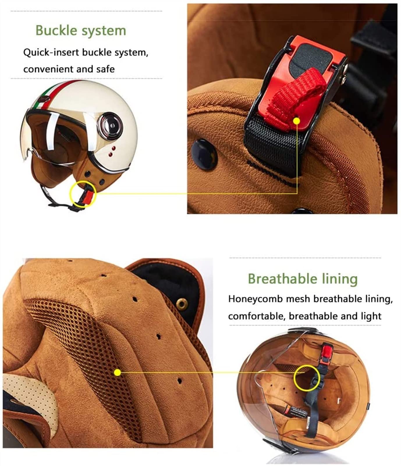 Suchst du einen stylischen Retro-Helm für deine nächste Motorrad-Tour? Dieser KEFFOR Vintage Jethelm kombiniert klassisches Design mit moderner Sicherheitstechnik. Mit DOT und ECE Zulassung bist du sowohl in den USA als auch in Europa straßenzugelassen - das gibt Sicherheit! Die hochwertige ABS-Schale mit EPS-Innentank absorbiert Aufprallkräfte super und schützt deinen Kopf zuverlässig. Besonders praktisch: Der Helm ist superleicht und kompakt - passt easy in den Rucksack oder unter den Motorradsitz. Das Quick-Release-System lässt sich selbst mit Handschuhen leicht bedienen. Und der vollständig herausnehmbare und waschbare Innenschuh hält alles frisch und sauber. Perfekt für Roller, ATV, Touring-Bikes oder Chopper - dieser Helm sieht einfach zu allem gut aus! Der verstärkte Kinnschutz gibt extra Sicherheit bei Offroad-Fahrten oder Langstreckentouren. Einfach aufsetzen, schnallen und los geht die Fahrt! Der Helm sitzt angenehm und behindert nicht die Sicht - genau das, was man sich von einem guten Halbhelm wünscht. Ob du nun Oldschool-Fan bist oder einfach nur einen bequemen, sicheren Helm suchst - hier wirst du fündig! In Größe 59-60cm erhältlich - perfekt für die meisten Kopfumfänge. Mach dein Bike komplett mit diesem tollen Retro-Helm!