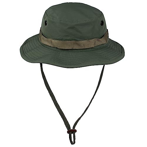 Endlich ein Sonnenhut, der nicht nur praktisch ist, sondern auch echt gut aussieht! Der DSCHUNGELHUT von Mil-Tec ist der ideale Begleiter für heiße, sonnige Tage. Mit seiner ca. 8 cm breiten, wellenförmigen Krempe schützt er dich zuverlässig vor der Sonne. Das coole Kinnband kannst du nutzen, um die Krempe nach oben zu schlagen - so siehst du nicht nur lässig aus, sondern hast auch mehr Sichtfeld. Die rundumlaufenden Laschen sind praktisch für Tarnmaterial oder andere Kleinigkeiten. Und die vergitterten Belüftungsöffnungen sorgen dafür, dass dir unter dem Hut nicht zu heiß wird. Aus atmungsaktivem Material gefertigt, lässt sich die Passform leicht anpassen. Perfekt für Outdoor-Abenteuer, Gartenarbeit oder einfach nur für den stylischen Sonnenschutz in der Stadt!