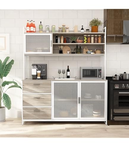 Brauchst du mehr Stauraum in deiner Küche? Diese massive Küchenkommode im Retro-Industrie-Design ist die Lösung! Mit den Maßen 150x40x174cm bietet sie reichlich Platz. Das Möbelstück verfügt über 3 Türen, 3 Schubladen und 4 Ablageebenen - perfekt für Geschirr, Küchenutensilien und Vorräte. Die große Arbeitsplatte bietet zusätzliche Ablagefläche. Hergestellt aus hochwertigem MDF in Dunkelbraun-Schwarz. Gewicht: 62kg. Einfacher Zusammenbau mit beiliegender Anleitung (DE, EN, FR). Passt nicht nur in die Küche, sondern auch ins Wohnzimmer oder Arbeitszimmer. Stilvoll und praktisch zugleich!