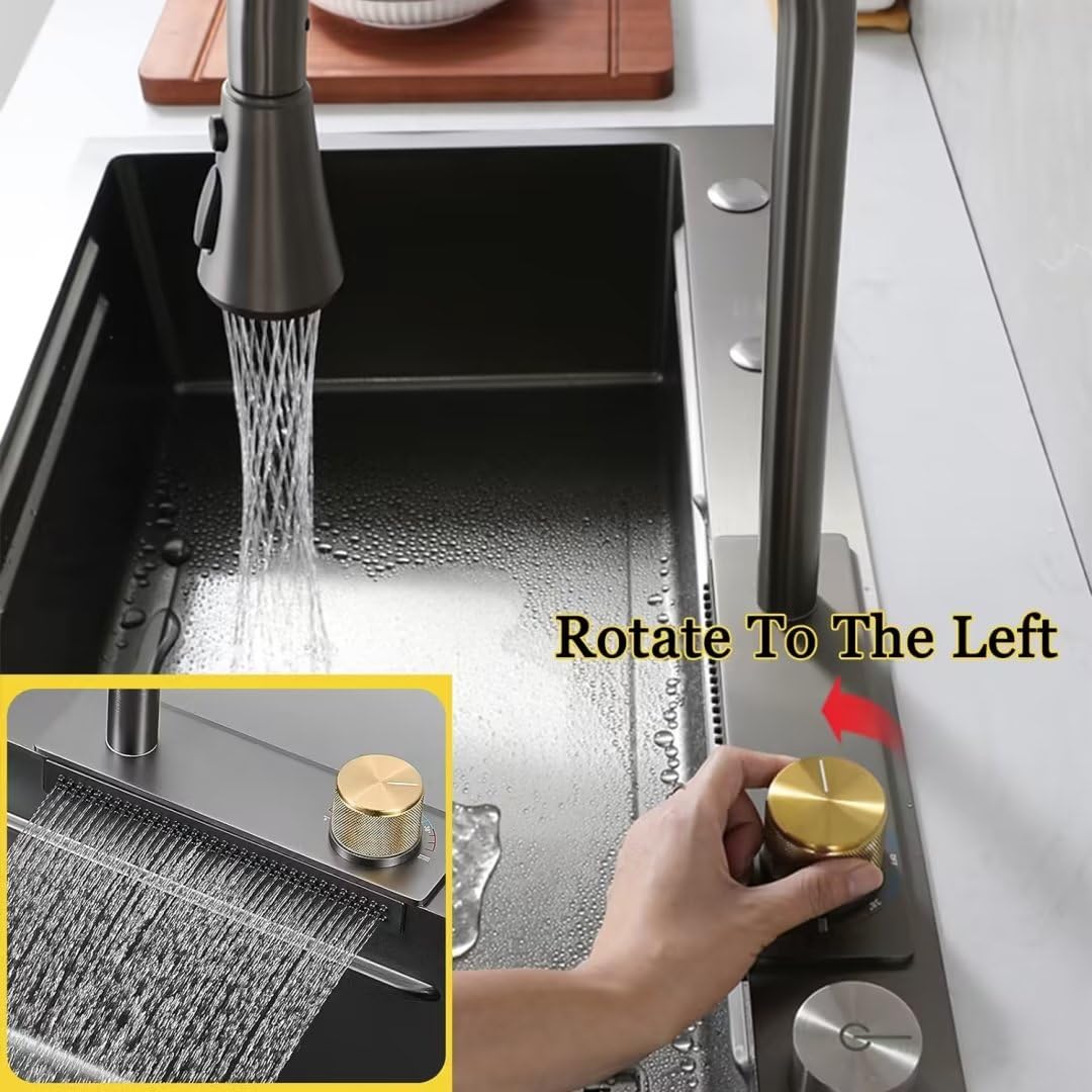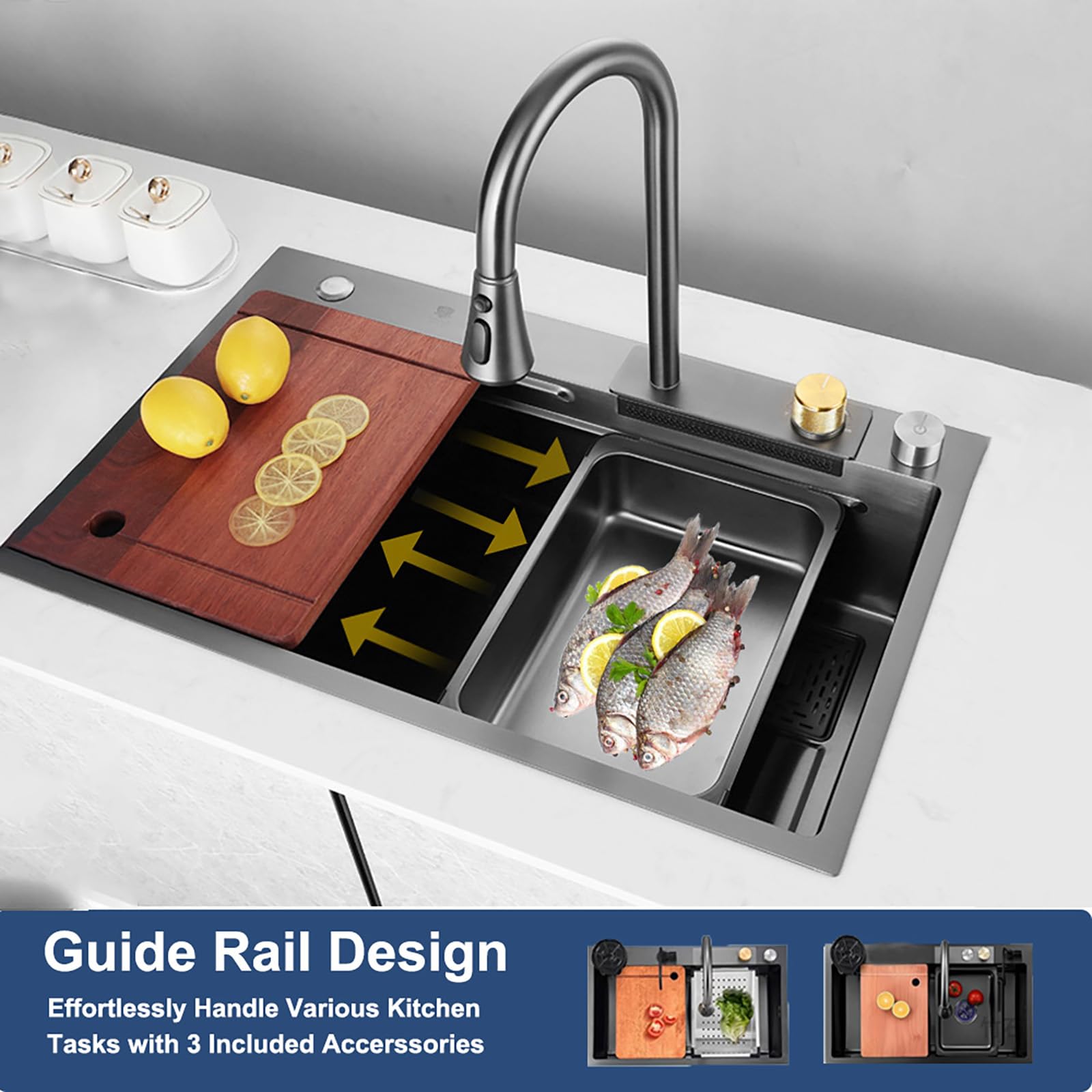 Boah, diese Küchenspüle hat alles! 60x45cm groß, 21cm tief und aus robustem 304er Edelstahl. Der Wasserfallhahn ist der Hammer - drei Modi: Wassersäule, Netz und Hochdruck. Tassenwaschfunktion? Check! Schneidebrett? Check! Selbst der Seifenspender ist dabei. Einfach in der Montage (oben, unterputz oder unterschrank) und mit 90mm Abflussanschluss super kompatibel. Sieht nicht nur gut aus, sondern ist auch mega praktisch. Perfekt für alle, die eine komplett ausgestattete Küchenlösung suchen!