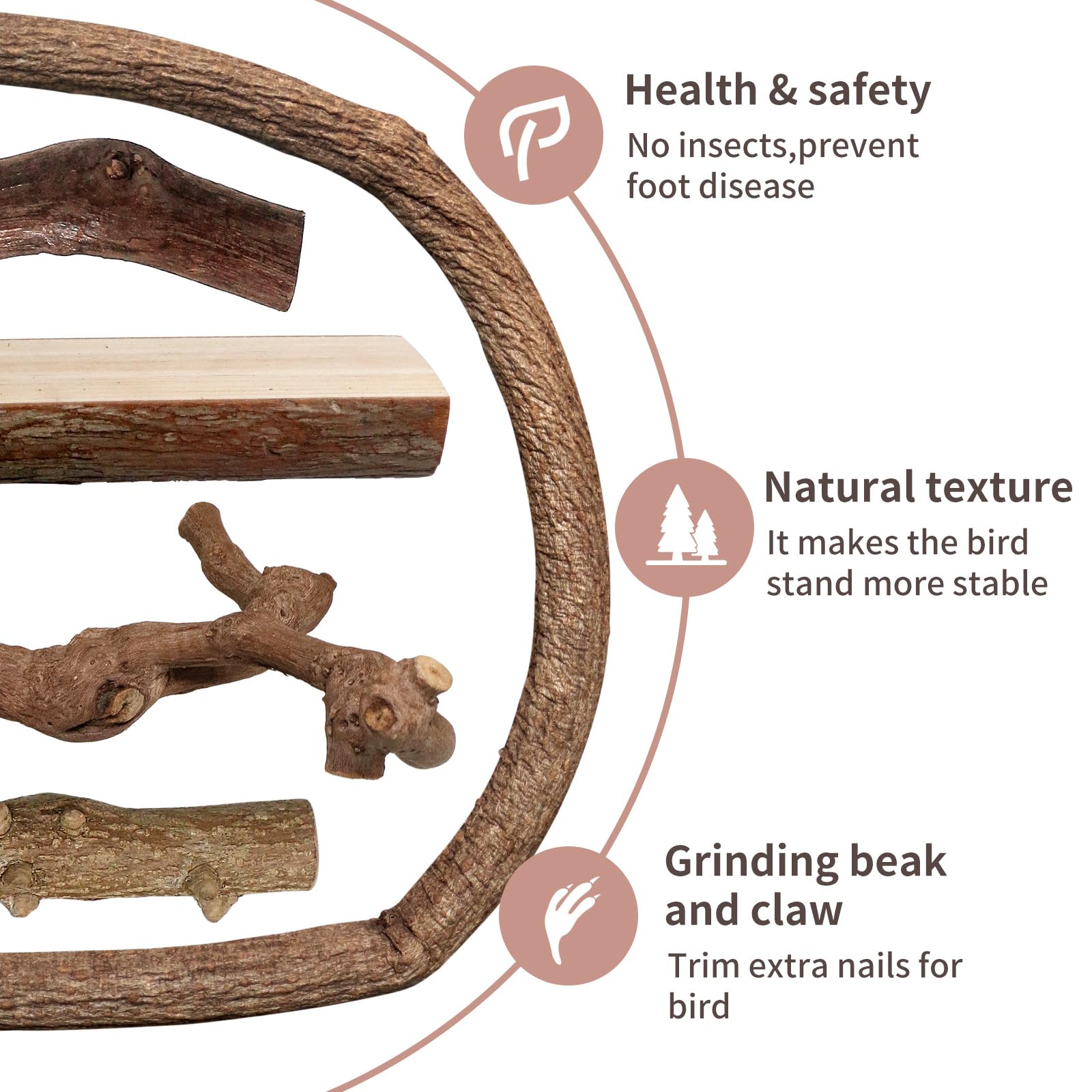 Deine Vögel werden diese natürlichen Sitzstangen lieben! Dieses 5-teilige Set enthält verschiedene Formen: U-förmige, Y-förmige, Pfefferkornholz- und Traubenholz-Stangen. Alles aus 100% natürlichem Holz - ohne Farbe, ungiftig und absolut sicher für deine gefiederten Freunde. Die raue Oberfläche ist perfekt für die Krallenpflege und verhindert Rutschen. Einfach mit Metallbolzen und Flügelmuttern im Käfig zu befestigen. So haben deine Vögel Abwechslung, können klettern und ihre Füße trainieren. Beugt Langeweile vor und fördert die Aktivität. Ob für Papageien, Wellensittiche oder andere Ziervögel - dieses Set macht jeden Käfig zum Paradies!