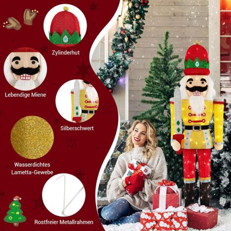 • COSTWAY Nussknacker König 180cm - Beleuchtete Weihnachtsdeko Für Innen & Außen