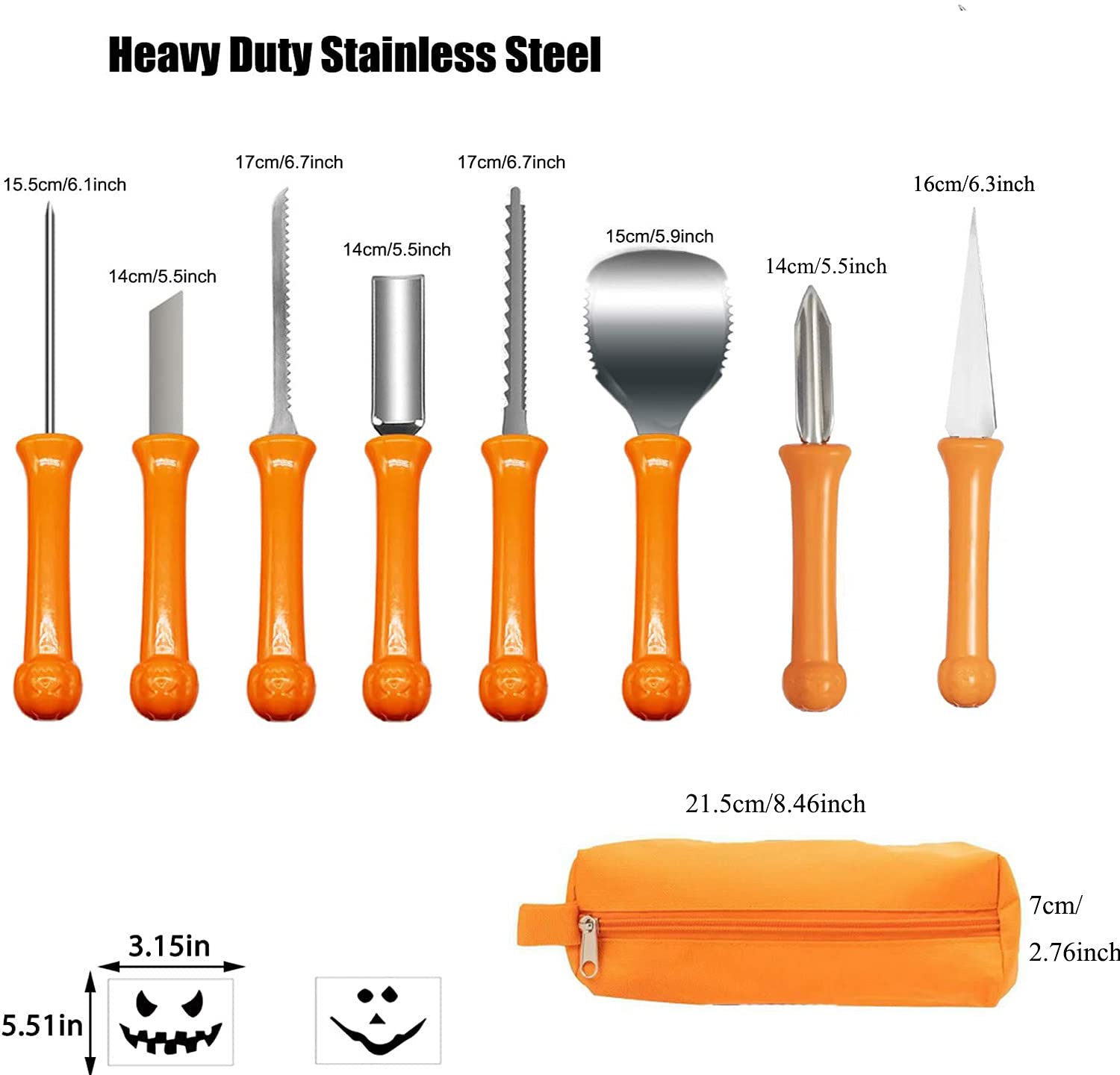 Endlich kannst du deine Kürbisse zu echten Halloween-Kunstwerken machen! Dieses 10-teilige Set hat wirklich alle Werkzeuge, die du brauchst: verschiedene Messer, Sägen und Schaber in unterschiedlichen Formen. Die Klingen sind aus hochwertigem Edelstahl - die bleiben scharf und rostfrei. Und die Griffe? Die haben coole Fledermausflügel-Muster und liegen super in der Hand, ohne dass du abrutschst. Selbst für Kinder geeignet (natürlich mit Aufsicht!), weil die Werkzeuge extra so designed sind, dass das Schnitzen leichter fällt als mit normalen Messern. Nach dem Gebrauch einfach in die praktische Nylontasche packen - alles schön ordentlich verstaut für nächstes Jahr. Egal ob gruselige Gesichter, Geister oder Skelette - mit diesem Set sind deiner Kreativität keine Grenzen gesetzt. Perfekt für einen lustigen Halloween-Abend mit der Familie oder Freunden!