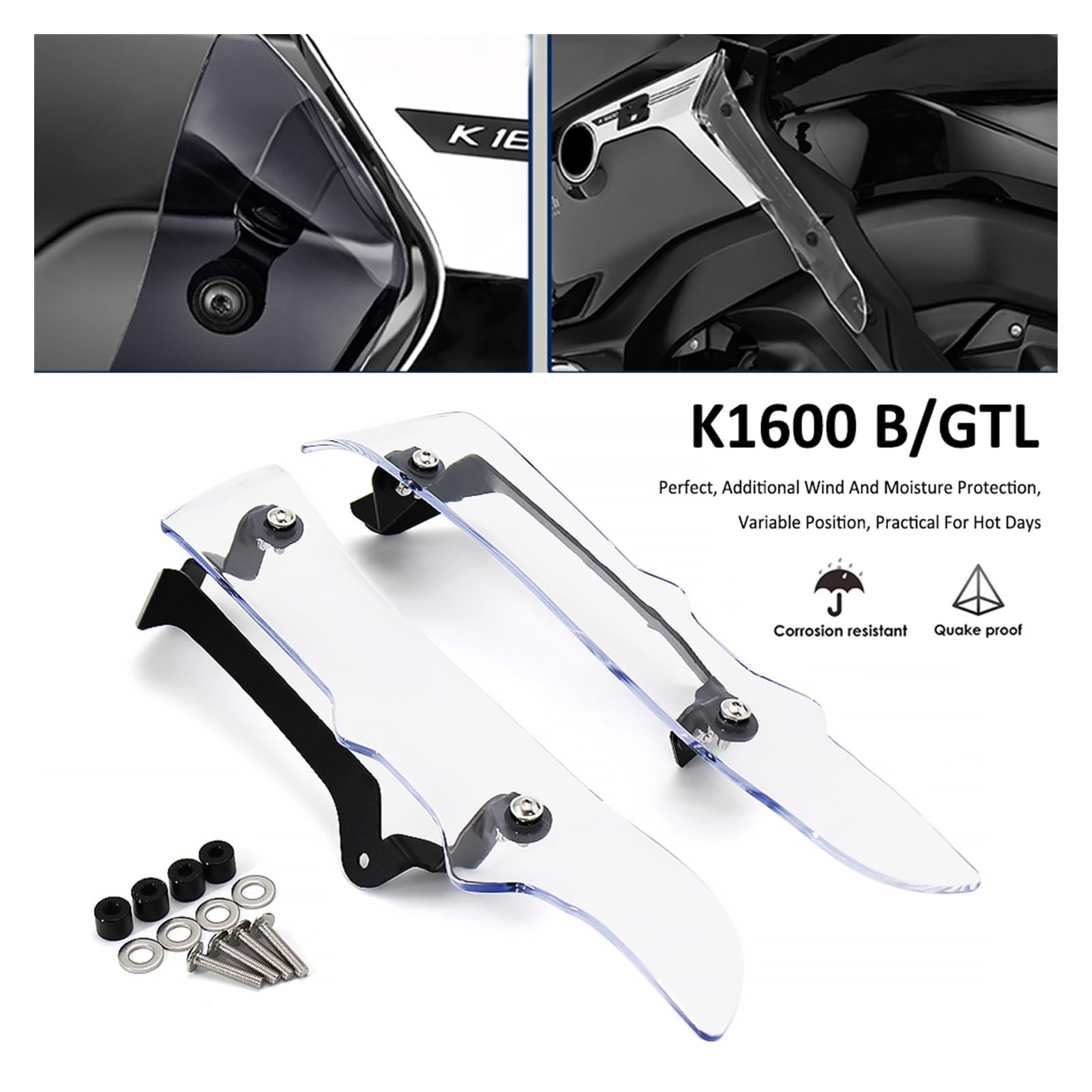 Mach deine BMW K1600GT noch tourentauglicher! Diese Seitenspoiler in Dark Smoke passen perfekt für die Modelle 2017 bis 2021. Aus 3mm starkem Acryl - super kratzfest und langlebig. Die Dinger schützen deine Beine und Füße effektiv vor Wind, Regen und Kälte. Und das Beste: An heißen Tagen kannst du sie einfach ausklappen für extra Frischluft. Einfach montieren und sofort mehr Komfort auf langen Touren. Leichtes Design, das weder Gewicht noch Stabilität beeinträchtigt. Kein lästiges Frieren mehr bei kaltem Wetter und an warmen Tagen einfach mal Luft an die Beine lassen. Ein echtes Upgrade für jeden K1600GT-Fahrer, der Wert auf Komfort legt. Einfach genial durchdacht!