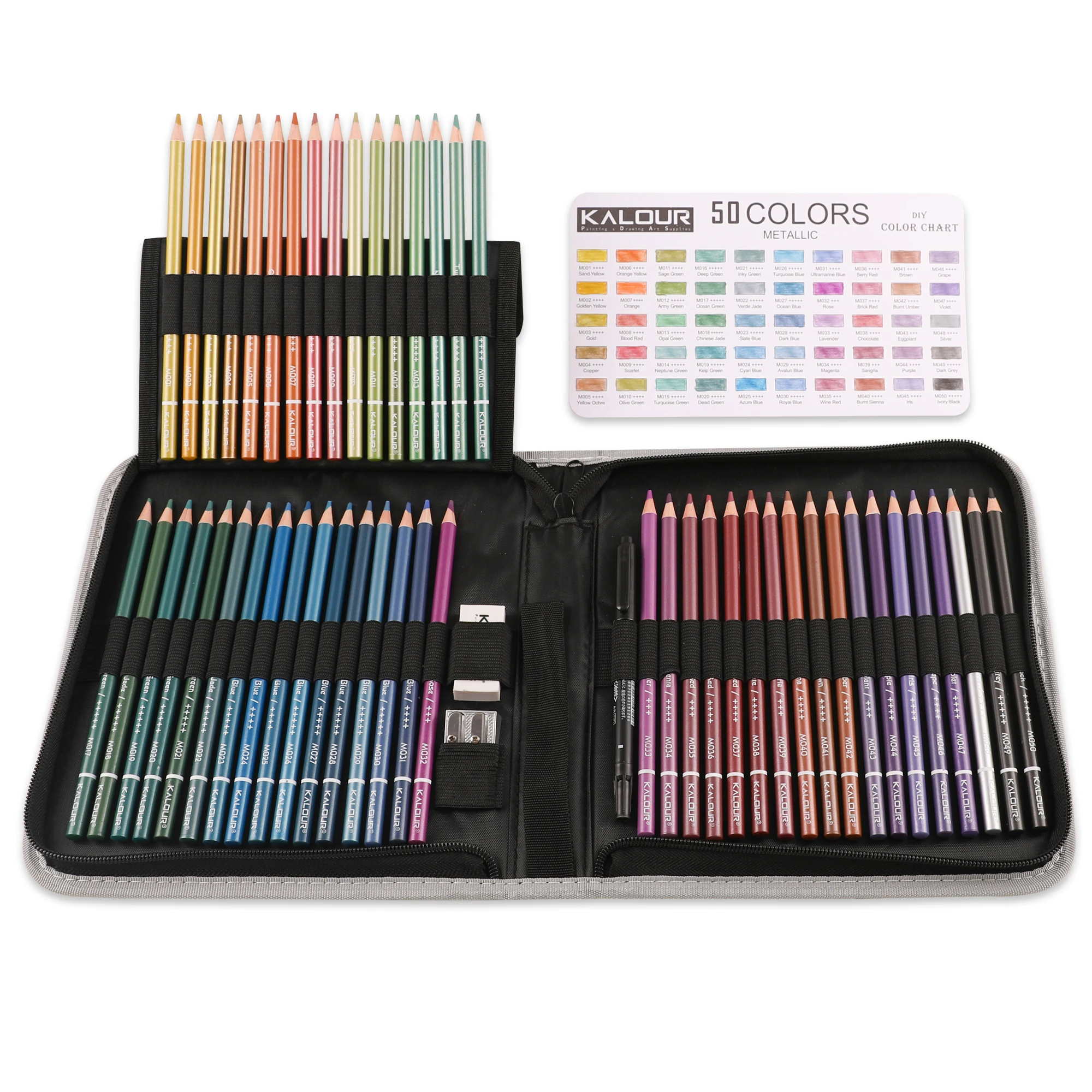 50 Metallic-Buntstifte Von KALOUR - Weiche Mine Für Glänzende Kunstwerke