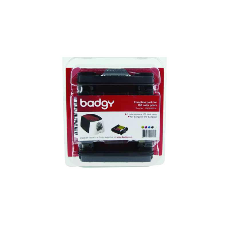 Frisches Druckerband für deinen Evolis Badgy 100 oder 200! YMCKO-Farben für knallige Ausweise und Karten.\n\nKompatibel zu: CBGR0500K, CBGR0100C - einfach vergleichen. Reicht für ca. 100 Drucke - je nach Auslastung natürlich.\n\nFür wen? Ideal für Schulen, Unternehmen, Security-Dienstleister - alle, die regelmäßig Ausweise drucken müssen.\n\nEinfach wechseln: Altes Band raus, neues rein - darauf achten, dass es richtig einrastet. Am besten Handschuhe tragen, damit keine Fingerabdrücke aufs Band kommen.\n\nQualität stimmt: Scharfe Drucke, lebendige Farben, keine Streifen. Deine Badgy druckt wieder wie am ersten Tag!\n\nLagertipp: Kühl und trocken aufbewahren - dann hält's besonders lange. Immer ein Ersatzband daheim haben - nichts ist blöder, wenn's gerade leer geht!