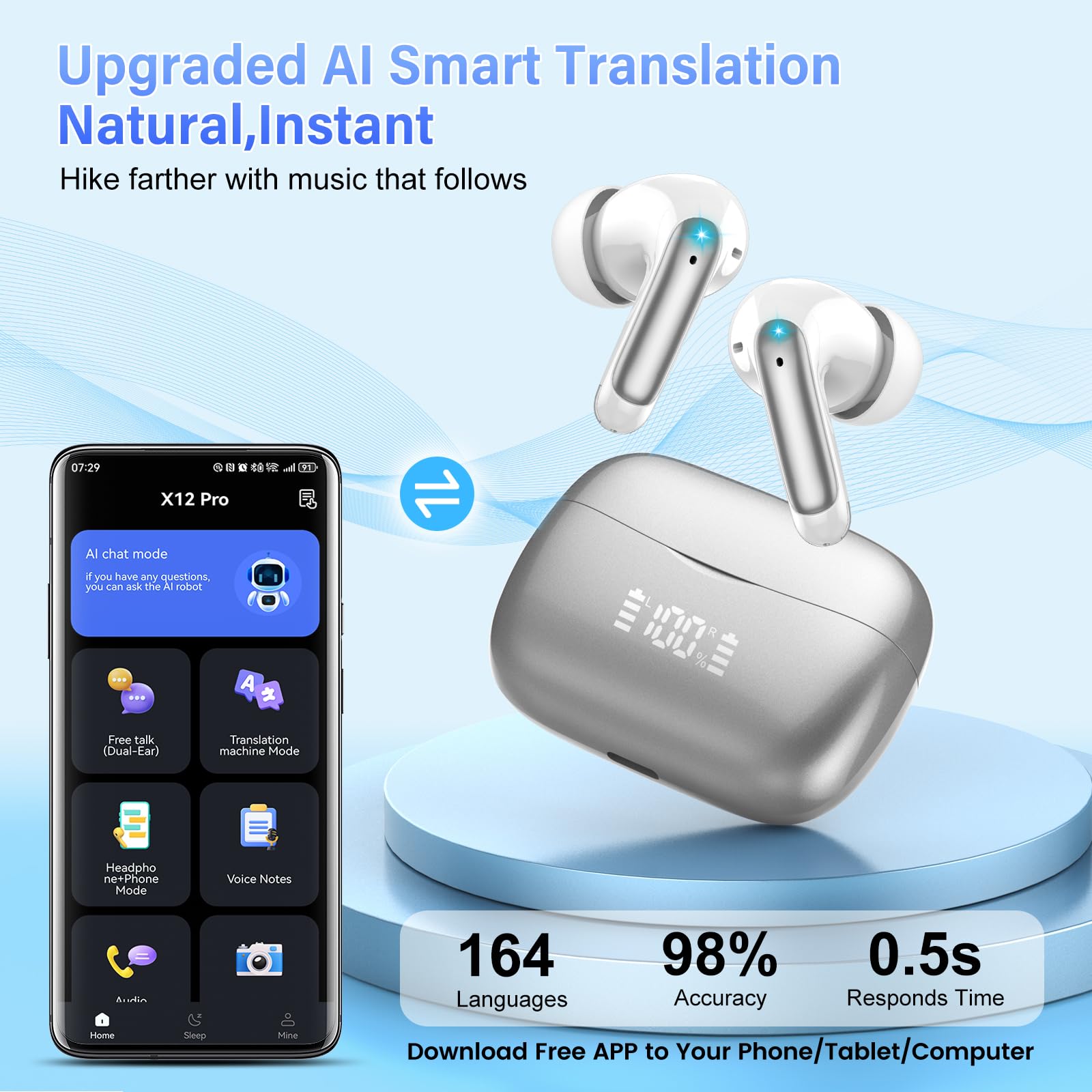Hey, stell dir vor, du kannst in 164 Sprachen übersetzen, ohne einen Finger zu rühren! Diese KI-Übersetzer-Kopfhörer sind echt der Hammer für Reisen, Geschäftstermine oder wenn du einfach mal eine neue Sprache lernen willst. Im Freie-Konversation-Modus erkenn die Kopfhörer automatisch, was du sagst und dolmetschen sofort - total natürlich, als würdest du mit jemandem plaudern, der deine Sprache spricht. Mit Bluetooth 5.4 hast du eine super stabile Verbindung und kaum Verzögerung. Die 56 Stunden Laufzeit sind perfekt für lange Reisen - 8 Stunden am Stück und dann nochmal 48 Stunden aus dem Ladecase. Und das Beste: Die ENC-Rauschunterdrückung sorgt dafür, dass du auch in lauter Umgebung alles klar verstehst. Es gibt 7 verschiedene Modi: Freie Konversation, Zwei-Personen-Modus für Gespräche, klassische Übersetzung mit Lautsprecher und sogar einen Fotomodus, der sofort Texte von Schildern oder Speisekarten übersetzt. Einfach die 'Ear Dance' App installieren, QR-Code scannen und loslegen! Die liegen auch super bequem im Ohr und mit der Touch-Steuerung wechselst du easy zwischen Sprachen oder regelt die Lautstärke. Egal ob im Meeting in Tokyo oder beim Essen bestellen in Paris - mit diesen Teilen fühlst du dich überall wie zu Hause!