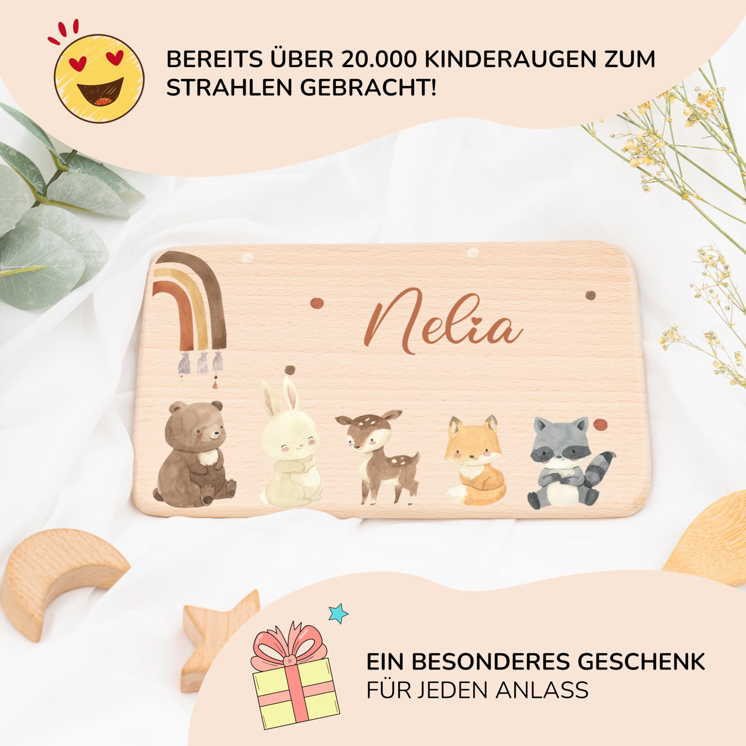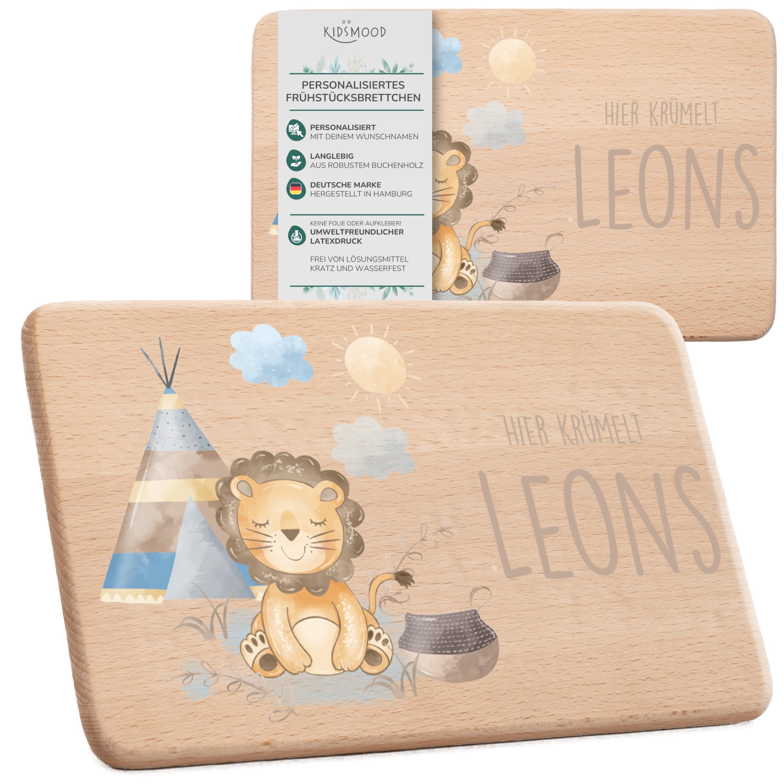 • KIDSMOOD Personalisiertes Frühstücksbrettchen - Mit Namen Und Tiermotiv