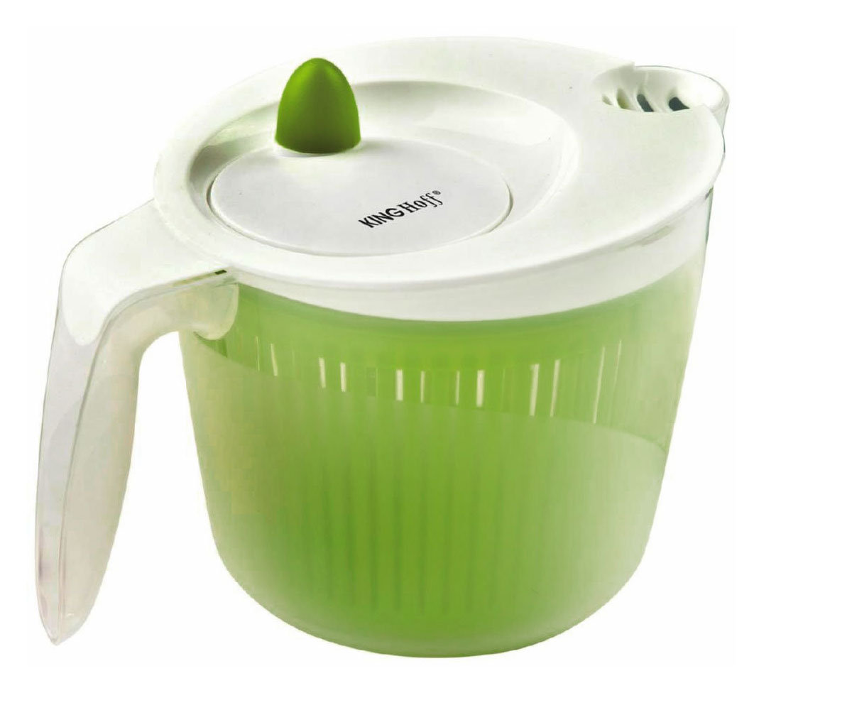 Perfekter Salat in Sekunden! Diese KINGHOFF Salatschleuder mit 2.0 Liter Fassungsvermögen macht aus nassem Salat knusprige Frische. Einfach den Salat in den Korb geben, Deckel schließen und am Griff drehen - schon wird das überschüssige Wasser rausgeschleudert. Ohne Strom, nur mit Muskelkraft - umweltfreundlich und effektiv! Die transparente Schüssel dient gleichzeitig als Servier-Schüssel - praktisch und zeitsparend. Spülmaschinengeeignet für einfache Reinigung. Perfekt nicht nur für Salat, sondern auch für gewaschenes Obst oder Gemüse. Mit 16cm Durchmesser und 10cm Höhe passt sie in jede Küche. Mach Schluss mit matschigem Salat - mit dieser Schleuder wird jeder Salat zum Knusper-Erlebnis. Ein Küchenhelfer, den man nicht mehr missen möchte!