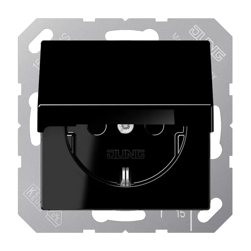 • Jung 1520 KL SW Schuko Steckdose Mit Klappdeckel - Schwarz 16A 250V