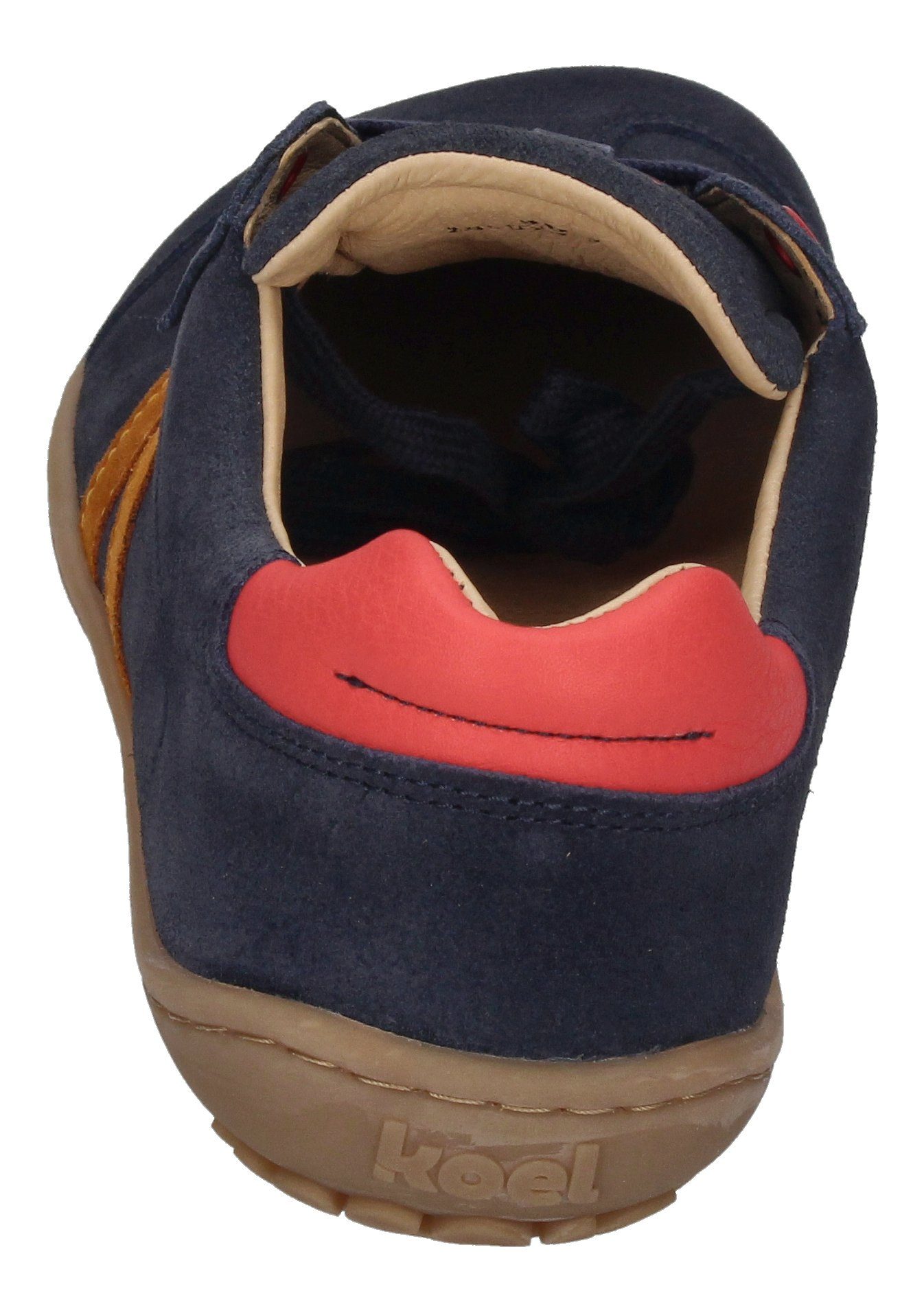 Total gemütlich und super umweltfreundlich - diese Barfuß Sneakers von KOEL sind einfach perfekt für den Alltag! Die weichen Wildleder-Sneaker fühlen sich an wie gemacht für deine Füße.\\n\\nDas Obermaterial ist echtes Wildleder, innen sorgt Leder für ein angenehmes Tragegefühl. Die Gummisohle gibt dir genug Halt, ohne einzuschränken. Und mit der klassischen Schnürung passt du die Sneakers ganz easy an deinen Fuß an.\\n\\nFlache Absätze? Check! Mittlere Schuhweite? Check! Egal ob zum Shoppen, zur Arbeit oder einfach nur für unterwegs - diese Sneakers begleiten dich durch den ganzen Tag.\\n\\nDie Navy-Farbe ist total vielseitig und passt zu fast allem in deinem Kleiderschrank. Und das Beste: Du fühlst dich fast wie barfuß, bist aber trotzdem super stylisch unterwegs! Perfekt für alle, die Wert auf Komfort und Nachhaltigkeit legen.