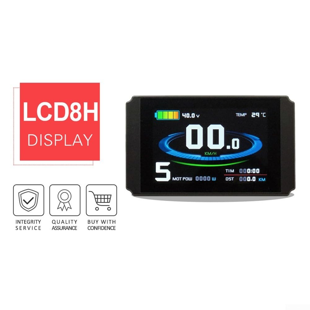 Upgrade dein E-Bike! Dieses KT LCD8H Display ist der perfekte Begleiter für deine Elektro-Radtouren. Kompatibel mit KT Controllern und passend für 24V, 36V und 48V Systeme. Das wasserdichte Gehäuse sorgt dafür, dass auch Regentouren kein Problem sind. Mit der praktischen Fernbedienung hast du alle Funktionen im Griff - ganz ohne die Hände vom Lenker zu nehmen. Das 45x65mm große Display zeigt alle wichtigen Daten klar an: Geschwindigkeit, Akkustand, Unterstützungsstufe und mehr. Einfache Installation und Bedienung - einfach Power-Taste drücken und losfahren! Im Lieferumfang sind Display, Halterung, Fernbedienung und Montagematerial enthalten. Mach dein E-Bike-Fahren noch komfortabler und informierter mit diesem hochwertigen Display!