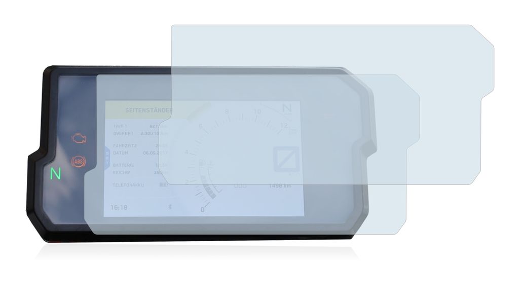 Schütze das wertvolle Display deiner KTM! Diese speziell angefertigte Schutzfolie passt perfekt auf die 5-Zoll Instrumentendisplays von KTM 390 Adventure (2020-2024), 790 Adventure, 890 Adventure, Duke und RC Modellen. Aus ultra-hartem Aluminiumsilikat-Doppelsicherheitsglas mit 9H Härte - die hält wirklich was aus! Kratzer, Stöße und Abschürfungen haben keine Chance. Dabei ist die Folie hochtransparent (99,99%) - du siehst genau so viel wie ohne Schutz. Die Touch-Reaktion bleibt superschnell und präzise. Die oleophobe Beschichtung hält Fingerabdrücke und Schmierflecken fern. Einfache Montage mit dem mitgelieferten Installationsset - keine lästigen Kleberückstände! Lieferumfang: 1x HD-klare Glas-Schutzfolie + komplettes Installationsset. Ein Muss für jeden KTM-Besitzer!