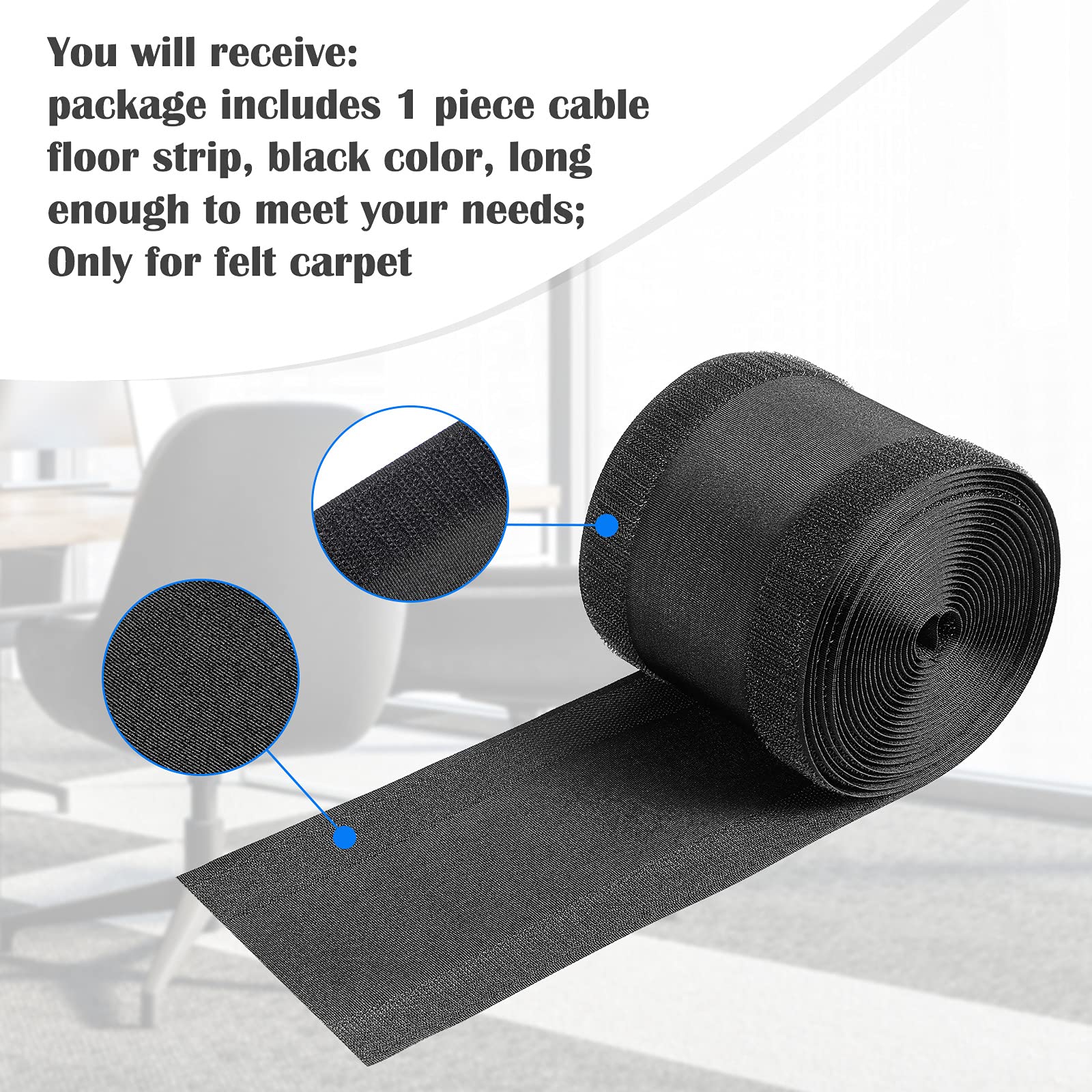 Speziell für Teppichböden entwickelt, liegt sie flach auf und fällt kaum auf. Aus robustem Polyester gefertigt, hält sie auch bei starker Beanspruchung problemlos stand. Einfach die Kabel hineinlegen - schon sieht alles ordentlich aus und niemand stolpert mehr!
