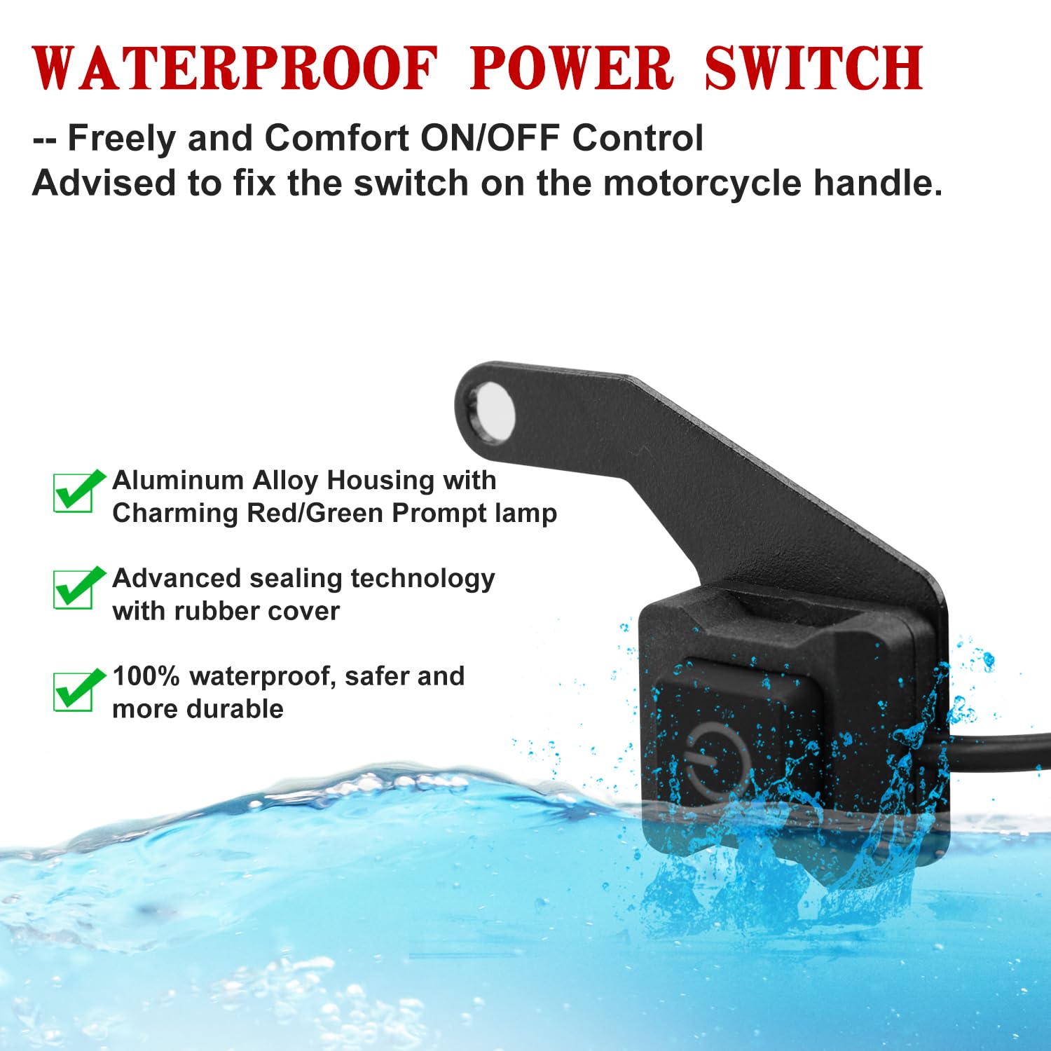 Komplett mit 20A Relais, optionaler 10A/15A Sicherung und wasserdichtem Ein/Aus-Schalter. 100% regendicht durch Gummiabdeckung und Aluminiumgehäuse.