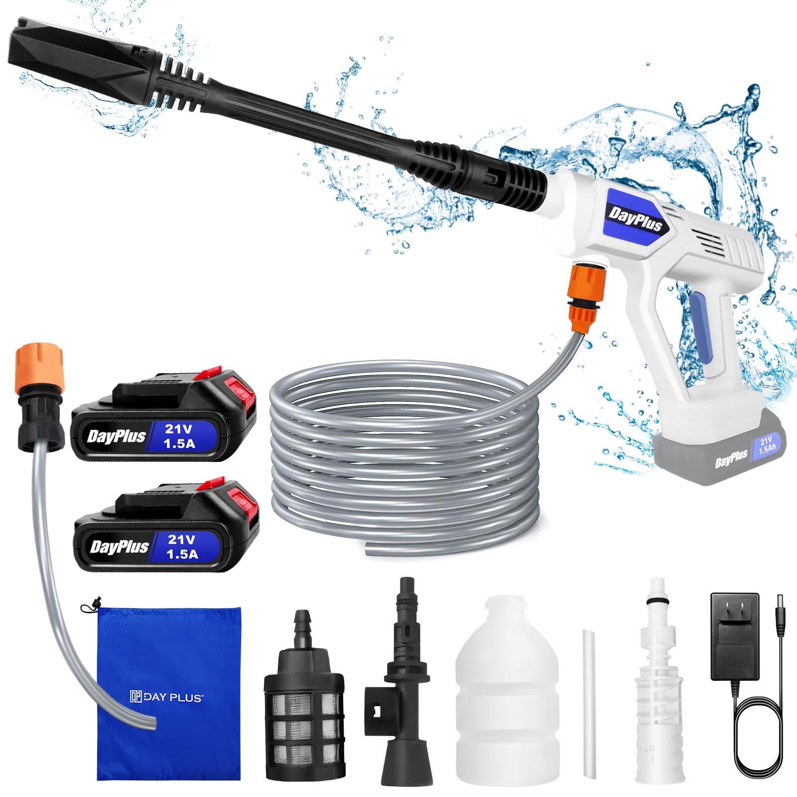 Schluss mit lästigen Kabeln und umständlichen Reinigungen! Der DeeprBlu kabellose Hochdruckreiniger mit stolzen 50Bar Druck bringt Power, wohin du willst. Mit dem großen 5.0Ah Akku hast du bis zu 40 Minuten ununterbrochene Reinigungszeit - perfekt für Auto, Terrasse, Gartenmöbel oder das Fahrrad. Die 6-in-1 Düse lässt sich ganz einfach drehen und bietet dir sechs verschiedene Sprühmodi: von 0° für hartnäckige Flecken bis 40° für große Flächen. Der 5 Meter lange Schlauch mit Filterkorb ermöglicht dir, Wasser aus Eimern, Pools oder sogar Flüssen zu schöpfen - super praktisch für Camping oder Ausflüge! Das kompakte Design und der mitgelieferte Aufbewahrungskoffer machen den Transport zum Kinderspiel. Montieren? Total einfach - ohne Werkzeug in wenigen Minuten erledigt. Die Ein-Knopf-Bedienung ist so intuitiv, dass wirklich jeder sofort loslegen kann. Ob Schlamm in Reifenritzen, eingetrockneter Dreck am Fahrrad oder verschmutzte Gartenmöbel - mit diesem Powerteil wird Reinigen zum echten Vergnügen. Und das Beste: Kein Kabelsalat, keine Steckdose in der Nähe notwendig - einfach Akku laden und ab geht die Post!
