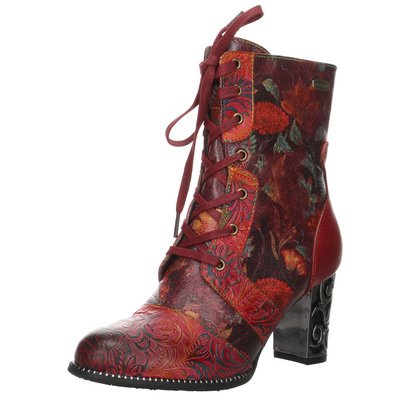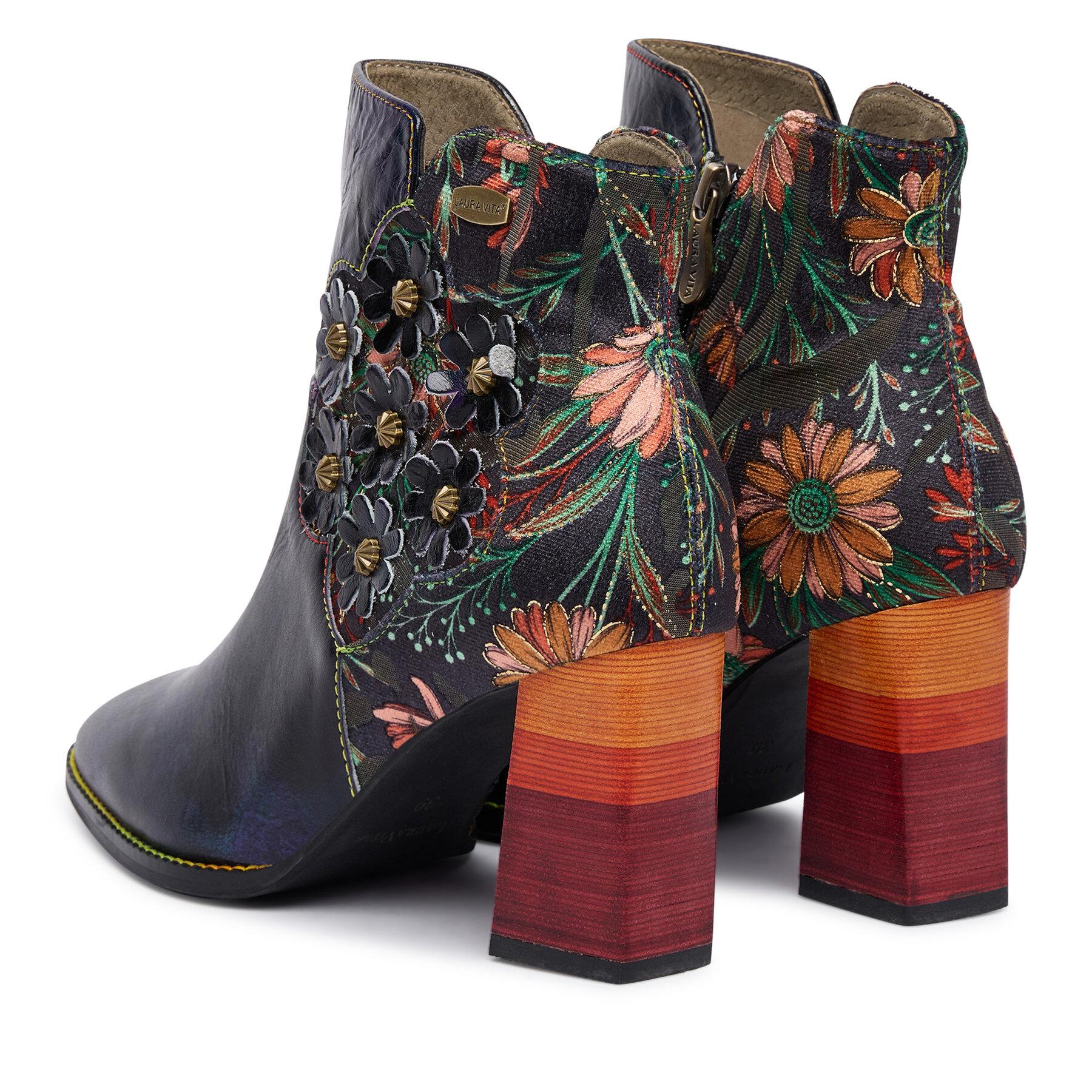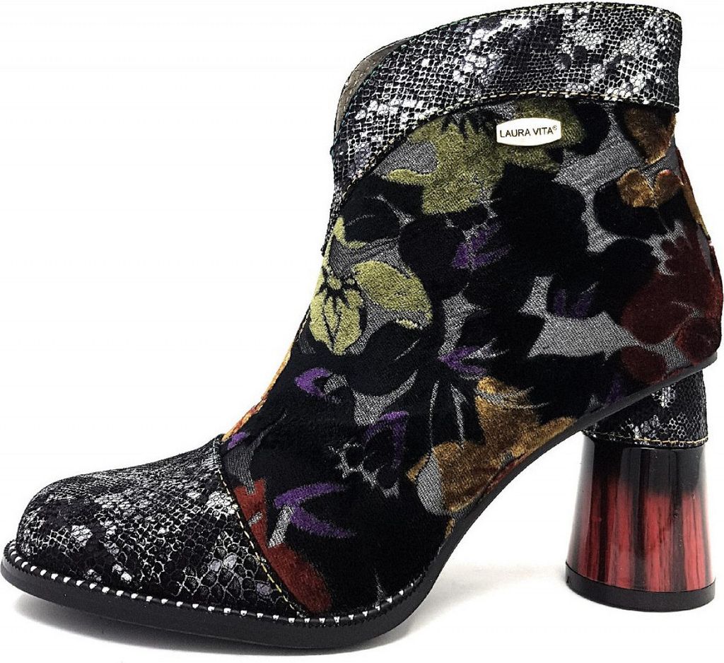 Laura Vita Damen Stiefelette Kacio 07 - Leder Mit Schlangenoptik Und Blumenmuster