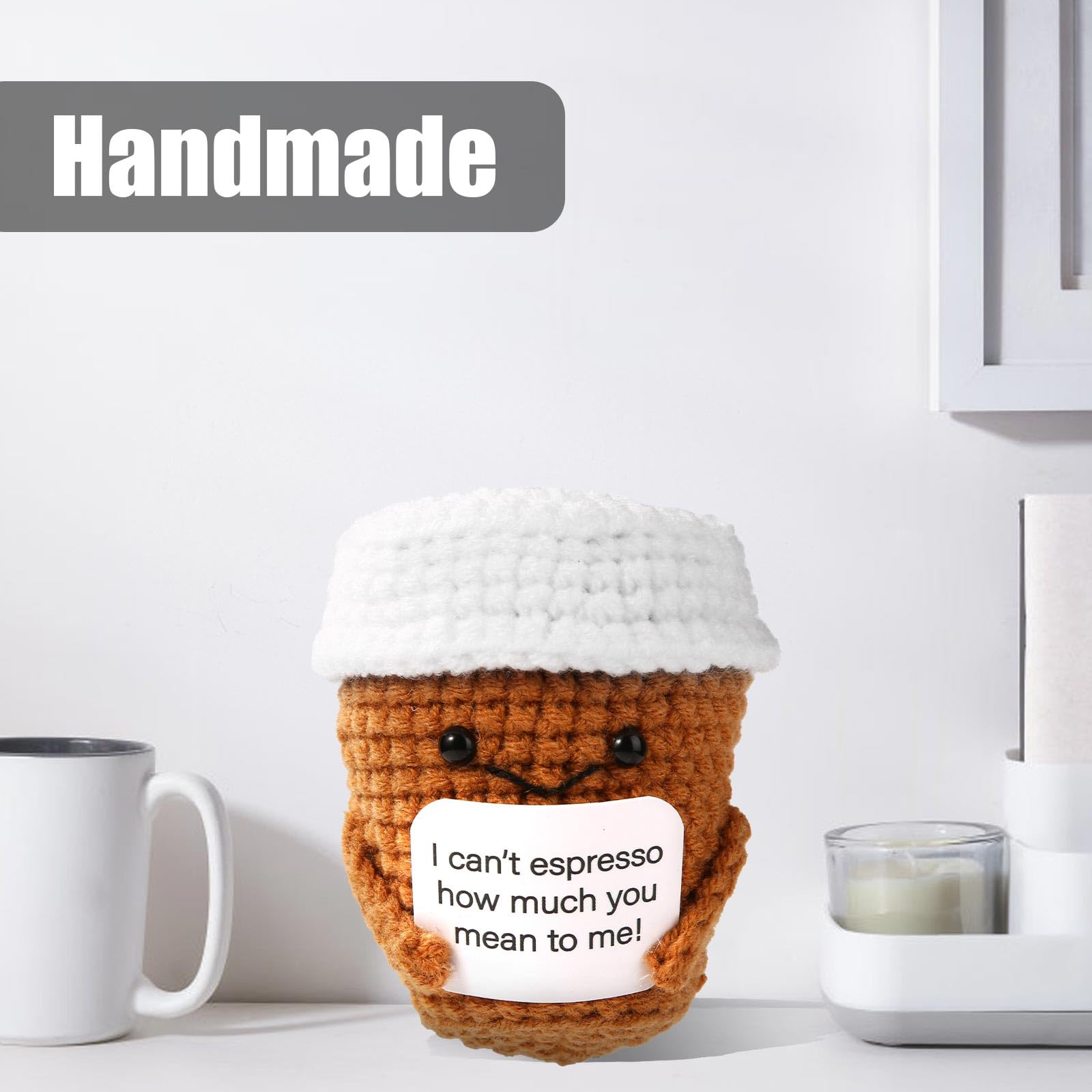 Oh wie süß ist denn diese gehäkelte Kaffeetasse! Mit ihrem freundlichen Lächeln und den warmen Worten auf der Karte bringt sie sofort gute Laune. Hergestellt aus weichem Wollgarn ist sie etwa 7,9 x 6,7 cm groß - also perfekt für den Schreibtisch, die Kommode oder als kleiner Glücksbringer für unterwegs. Die Qualität ist top, verblasst nicht und die Farben Gelb und Weiß sehen einfach fröhlich aus. Perfekt als Geschenk für Kaffeeliebhaber, Freunde oder Familienmitglieder zu Geburtstagen, Feiertagen oder einfach so. Egal ob im Wohnzimmer, Schlafzimmer, Büro oder Café - diese kleine Häkelpuppe verbreitet überall positive Vibes. Einfach niedlich und macht jeden Tag ein bisschen besser! Und das Beste: Sie ist handgefertigt mit Liebe zum Detail, was man wirklich sieht und spürt.