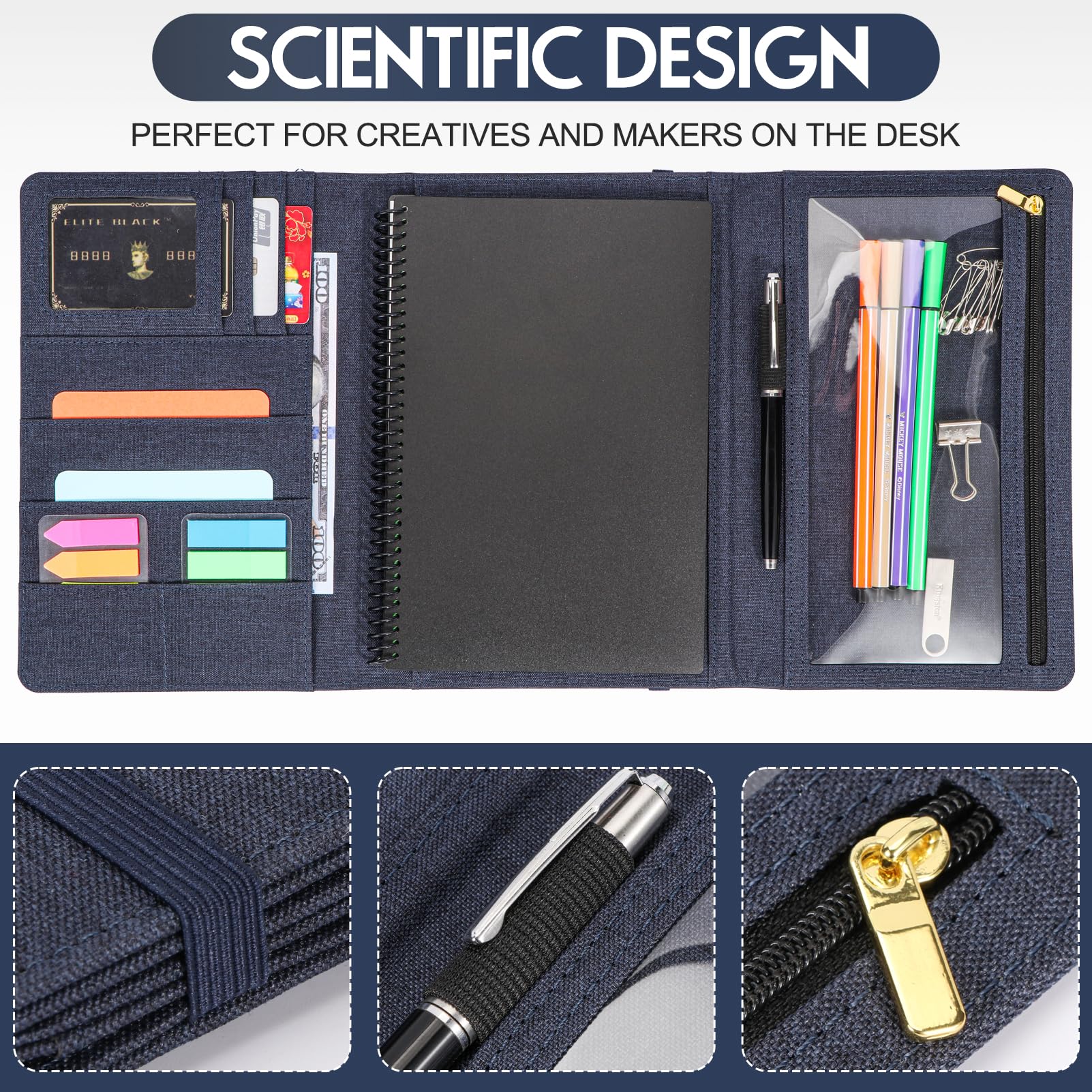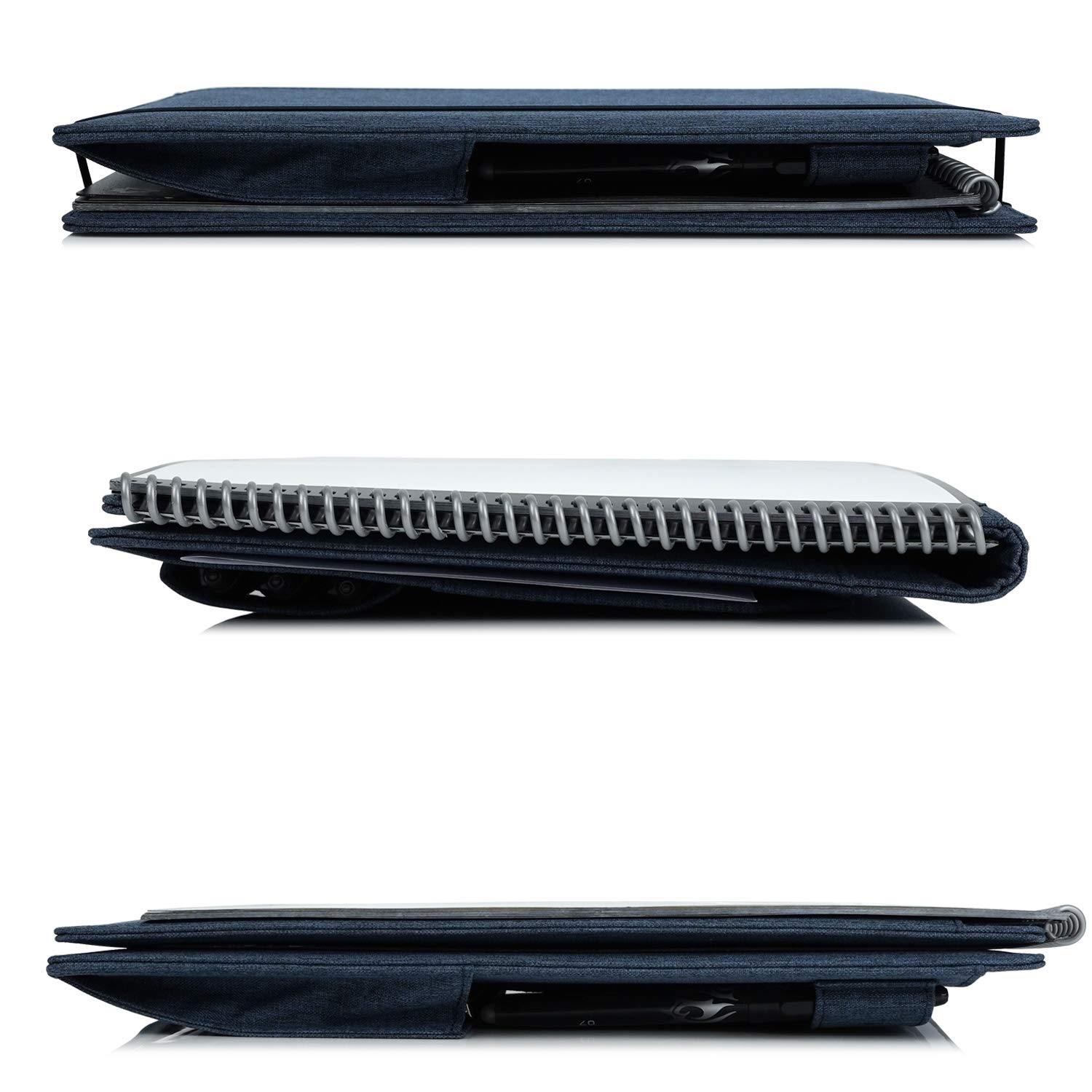 Organisation war noch nie so stylisch! Das Kaitiaki Folio Cover ist der perfekte Begleiter für deine Notizbücher im A5-Format. Kompatibel mit Rocketbook Flip und anderen Spiral-Blöcken, bietet es 8 praktische Taschen für all deine wichtigen Utensilien. Außen findest du zwei große Taschen, innen erwarten dich 4 Visitenkartenfächer, ein Reißverschlussfach für Wertsachen, eine große Innentasche für Dokumente und ein elastischer Stifthalter. Aus recyceltem Stoff gefertigt, ist die Hülle robust, wasserabweisend und umweltfreundlich. Geschlossen misst sie 240x185x14 mm, geöffnet 240x375x14 mm. Das Gummiband hält alles sicher zusammen, wenn du unterwegs bist. Perfekt für Studenten, kreative Berufe oder alle, die ihr Leben besser organisieren wollen. Mit diesem professionell aussehenden Cover hast du immer alles griffbereit - ob im Meeting, an der Uni oder unterwegs!