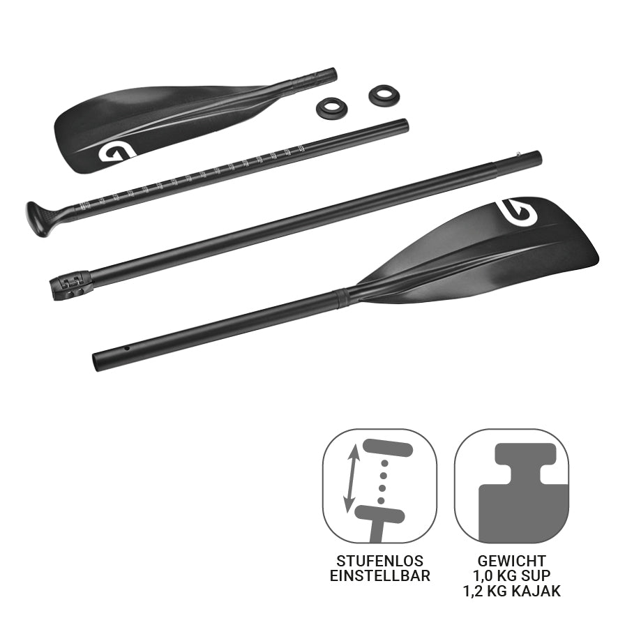 Hey Wasserratten! Dieses Kajakpaddel aus Aluminium ist genau das Richtige für deine nächste Tour. Super stabil gebaut, aber trotzdem leicht in der Hand. Das coole 4-teilige Teleskopsystem lässt sich individuell in der Länge anpassen - perfekt für verschiedene Fahrer und Situationen. Mit drei verschiedenen Modi für optimale Paddelwinkel, egal ob auf dem See oder im Fluss. Das Doppelkopf-Design mit gebogenen Paddelflächen gibt dir richtig Kontrolle, auch in Stromschnellen. Und praktisch: Kann man auseinander nehmen, super für Transport und Lagerung. Ideal für Training, Angeln oder einfach nur Spaß auf dem Wasser. Für Erwachsene und Jugendliche gleichermaßen geeignet. Egal ob du erfahrener Sportler oder Einsteiger bist - mit diesem Paddel machst du alles richtig. Also, worauf wartest du noch? Ab auf's Wasser damit!