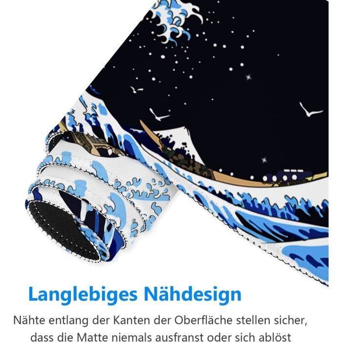 Verwandle deinen Schreibtisch in ein japanisches Kunstwerk mit diesem atemberaubenden XXL Mauspad! Das 800x300 mm große Pad zeigt Hokusais berühmte Kanagawa Welle in brillianten Blautönen - ein echter Blickfang für dein Büro oder Gaming-Setup. Mit 3 mm Dicke bietet es nicht nur eine superweiche Unterlage, sondern auch genug Platz für deine Maus und Tastatur. Die rutschfeste Unterseite hält das Pad sicher an Ort und Stelle, während die wasserabweisende Oberfläche für Langlebigkeit und einfache Reinigung sorgt. Ob du nun zockst oder arbeitest - die große Fläche ermöglicht präzise Mausbewegungen und das Design inspiriert deine Kreativität. Der Berg Fuji im Hintergrund und die detailgetreue Darstellung der stürmischen See mit den kämpfenden Booten machen dieses Mauspad zu mehr als nur einem Accessoire - es ist ein Statement! Perfekt als Geschenk für Japan-Fans, Gamer oder alle, die ihrem Arbeitsplatz eine besondere Note verleihen möchten. Aus hochwertigem Schaumstoff gefertigt, der nicht nur gut aussieht, sondern sich auch angenehm anfühlt.