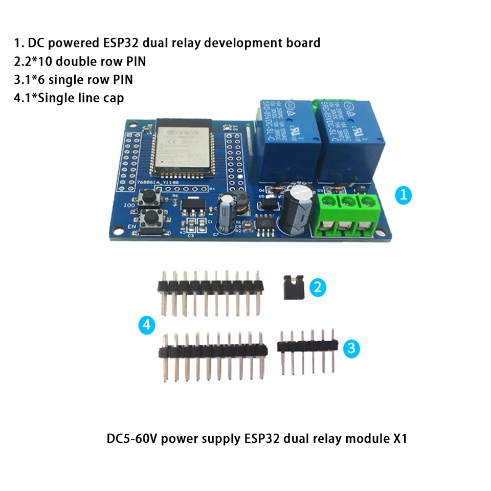 Mach dein Zuhause smart! Dieses coole ESP32 Relaismodul mit WiFi ermöglicht dir, zwei elektrische Geräte per App oder Browser zu steuern. Mit dem ESP32-WROOM Modul verbindest du es einfach mit deinem WLAN und schon kannst du von überall auf der Welt deine Geräte an- und ausschalten. Unterstützt DC 5-60V Eingangsspannung und schaltet Lasten bis 250V AC oder 30V DC. Perfekt für die Heimautomatisierung - ob Lampen, Steckdosen oder Garagentor. Mit vielen GPIO-Pins für zusätzliche Sensoren kannst du Temperatur, Bewegung und mehr überwachen. Für Entwickler: Das Modul ist programmierbar und erweiterbar. Einfach anschließen, konfigurieren und dein smartes Zuhause genießen! Inklusive allem was du brauchst.