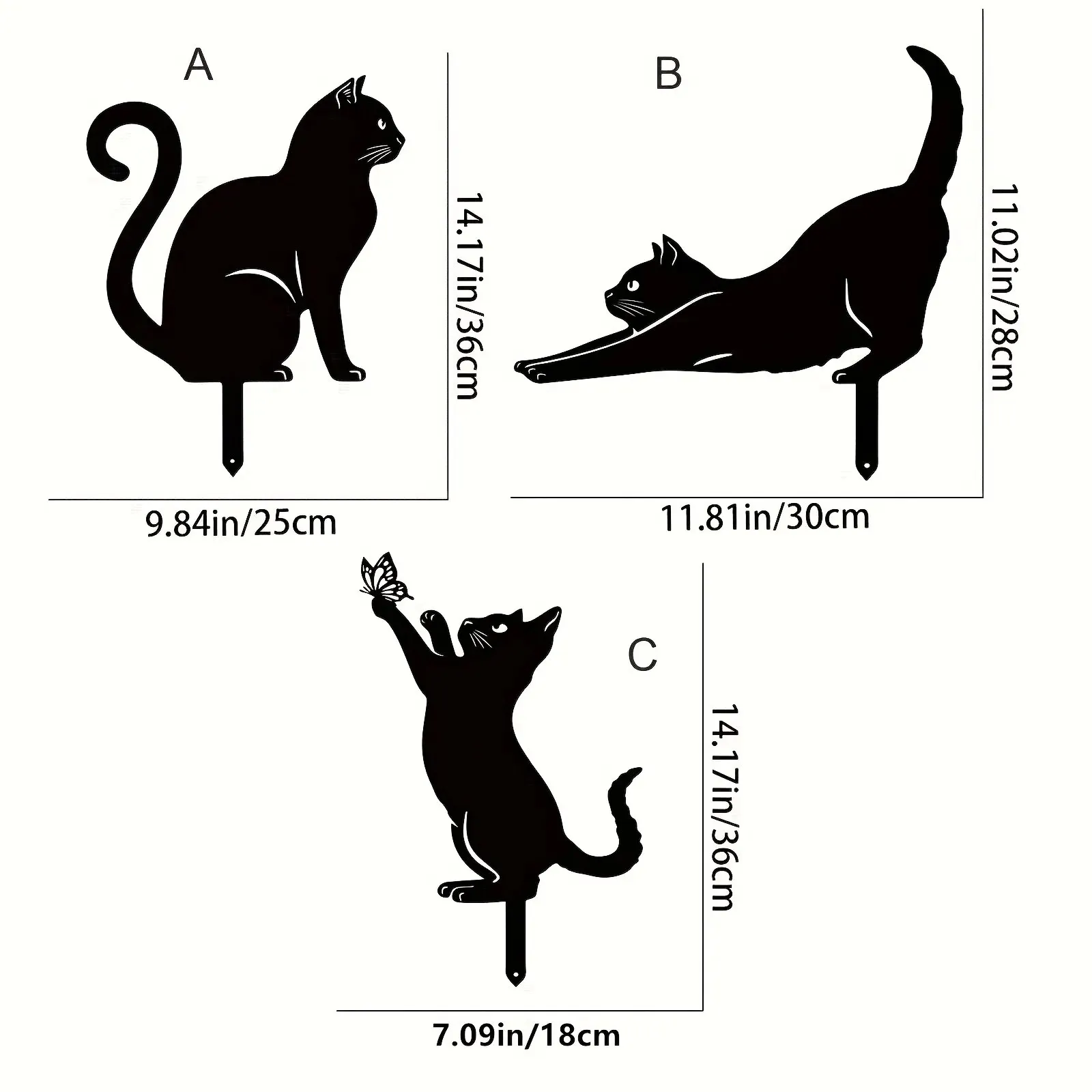 Verleihe deinem Garten Charme mit diesen entzückenden Metall-Katzen! Das 3-teilige Set in schwarzer Silhouetten-Optik zeigt verspielte Katzen mit Schmetterlingen - ein echter Hingucker für Beet, Rasen oder Terrasse. Aus robustem Eisen mit wetterfester Beschichtung gefertigt, sind die Figuren sonnenbeständig und langlebig. Die Maße (18x14,9cm, 11x9,8cm, 12,4x10cm) sorgen für abwechslungsreiche Blickpunkte. Einfach in den Boden stecken und dekorieren - ob im Garten, auf dem Balkon oder als Deko für Feste. Ein ideales Geschenk für Katzenliebhaber, zur Gartenverschönerung oder als Party-Deko zu Halloween, Weihnachten & Co. Bring Leben in deine grüne Oase!