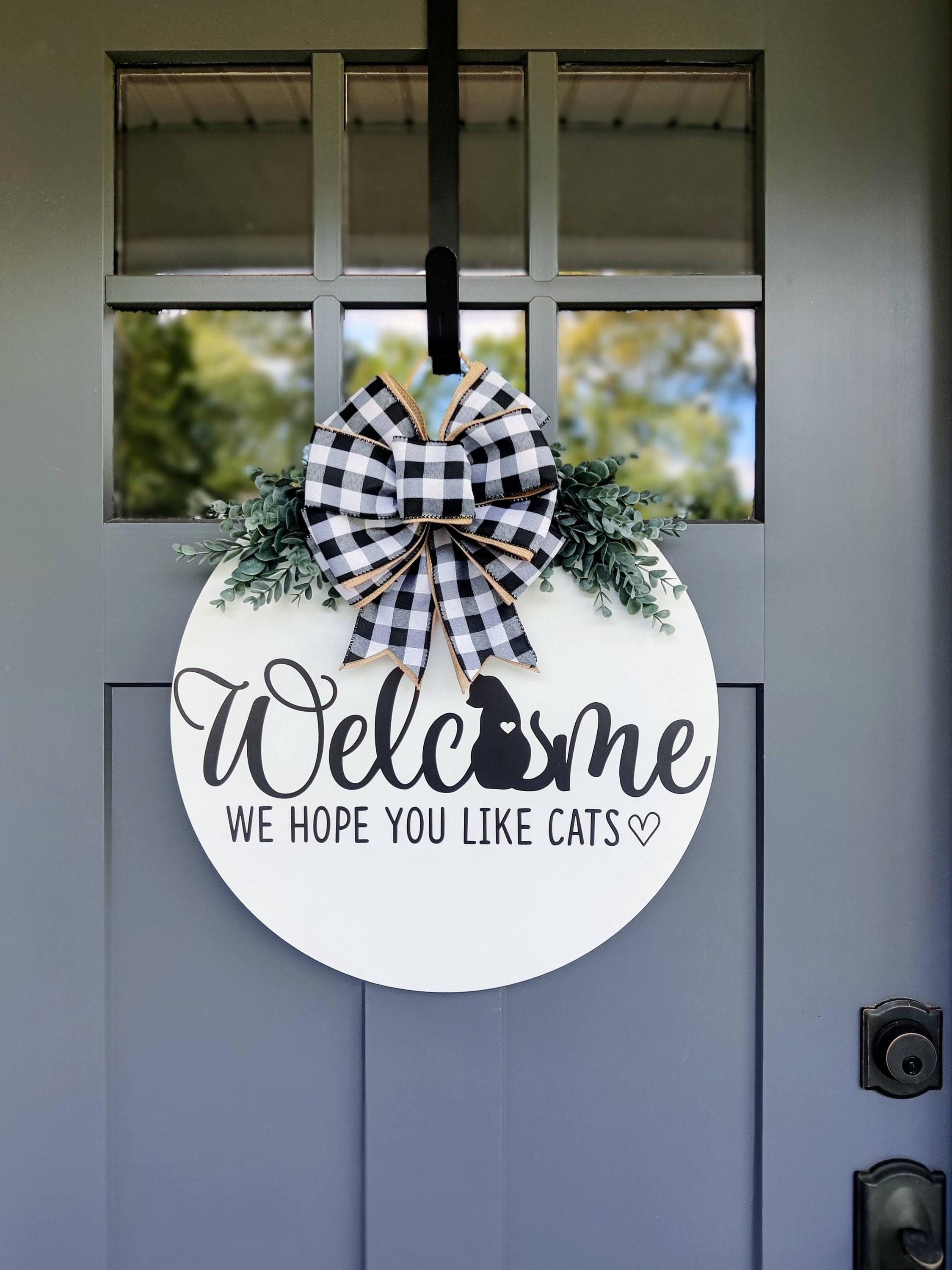 Perfekt für Katzenliebhaber oder einfach alle, die es gemütlich mögen. Das Schild sorgt überall für positive Stimmung und wird deine Gäste sofort willkommen heißen.