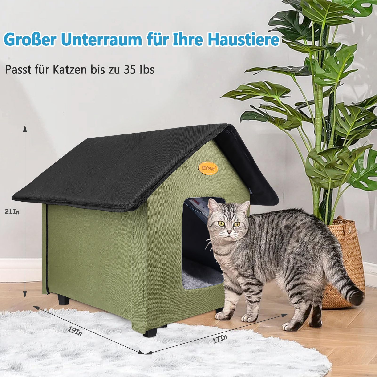 • Beheiztes Katzenhaus Outdoor Winterfest - Isolierte Katzenhütte Mit Heizpolster