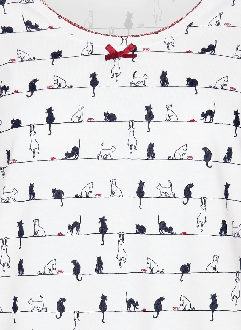 Deutsches Qualitätshandwerk meets süße Katzen! 🐱 Dieses Trigema Langarmshirt aus 100% Baumwolle ist perfekt als gemütlicher Schlafanzug oder lässiges Oberteil. Mit niedlichem Allover-Katzenprint und feinen Kontrastnähten an Hals, Ärmeln und Saum. Der figurbetonte Schnitt sitzt einfach perfekt! ✨ Aus weichem Deluxe Single Jersey - fühlt sich an wie eine Umarmung! Besonders praktisch: 60°C waschbar und bei heißer Temperatur bügelbar. Als echter Trigema-Artikel zu 100% in Deutschland produziert - da weißt du, was du hast! Ob als gemütliche Nachtwäsche oder lässiges Oberteil für zu Hause - dieses Shirt macht einfach immer eine gute Figur. Hol dir dieses Qualitätsstück und genieße deutschen Komfort mit süßem Katzen-Charme!