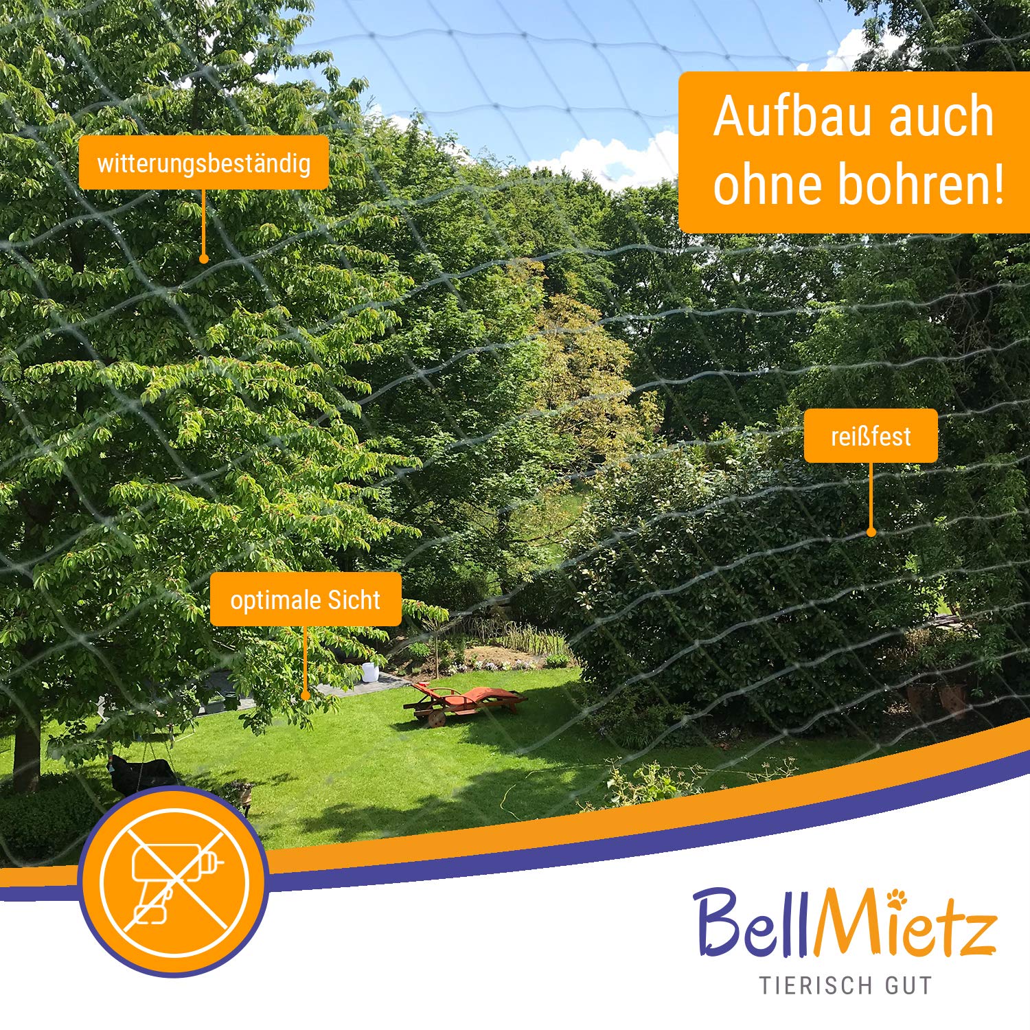 • PFOTENKRAFT Katzennetz 3x10m - Transparentes Balkonnetz Ohne Bohren