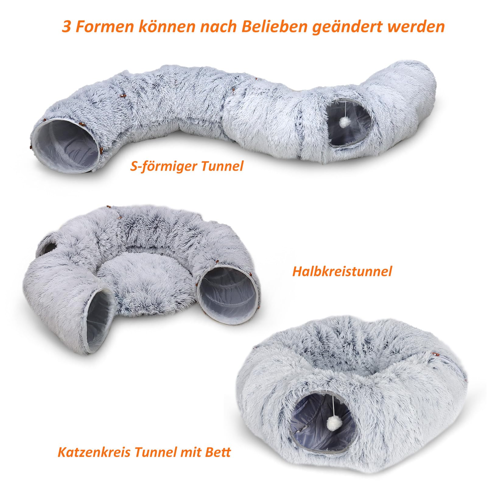 Für alle Katzenbesitzer: Dieser Tunnel ist der absolute Renner bei deinem Stubentiger! Mit ganzen 150 cm Länge und drei verstellbaren Formen - als S, C oder Kreis - bleibt es immer abwechslungsreich. Der Metallrahmen mit verdickten Stahlfedern ist super stabil, selbst wenn mehrere Katzen gleichzeitig toben. Tagsüber ist er der perfekte Spielplatz, nachts wird er zum kuscheligen Schlafplatz. Die zwei großen Belüftungslöcher (26 cm Durchmesser) sorgen für frische Luft, damit's deiner Katze nicht zu stickig wird. Und das Beste: In nur 10 Sekunden zusammengeklappt und platzsparend verstaut! Maße: 75 x 75 cm, Höhe 26 cm. Deine Katze wird verrückt nach diesem Tunnel sein - versprochen! Perfekt für Wohnung oder Haus.