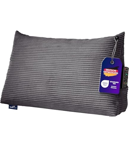 Endlich bequem im Bett sitzen! Dieses dreieckige Keilkissen ist die perfekte Rückenstütze fürs Bett oder Sofa. Maße: 120x40x12cm - also extra lang für volle Rückenunterstützung. Aus weichem Kordsamt und gefüllt mit hochdichter Polyester-Baumwoll-Füllung. Ergonomisch geformt entlastet es Rücken und Schultern beim Lesen, Fernsehen oder Arbeiten am Laptop. Mit praktischen Seitentaschen für Fernbedienung, Handy & Co. Bezug abnehmbar und waschbar. Wird platzsparend vakuumverpackt geliefert - nach dem Auspacken einfach kräftig schütteln und 48 Stunden auslüften lassen. Ein Must-Have für alle die gerne im Bett entspannen!