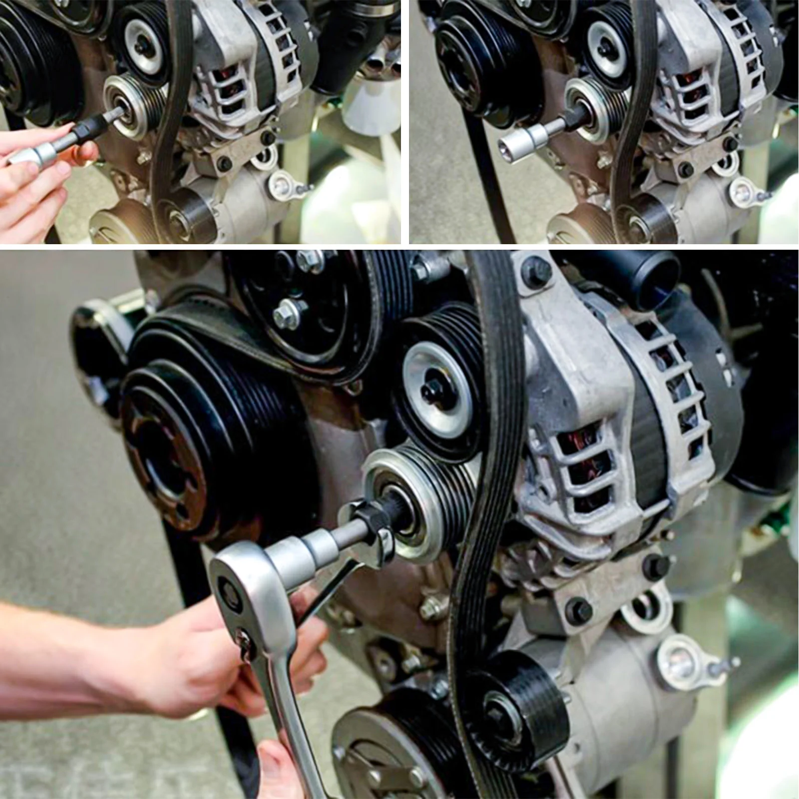 Boah, endlich ein vernünftiges Werkzeug für die Keilriemenscheibe! Als Hobbymechaniker hab ich schon so manches Teil verhunzt - aber mit diesem 33-Zähne-Werkzeug geht die Demontage der Lichtmaschine wie von selbst. Perfekt für meine BMW und Audi-Projekte.\\n\\nDas Teil ist aus massivem Metall - kein billiger Schrott der beim ersten Einsatz bricht. Die 33 Zähne greifen perfekt in die Freilauf-Riemenscheibe und man hat genug Hebelkraft, um auch festsitzende Teile locker zu bekommen. Kompatibel mit so ziemlich allen deutschen Autos - BMW, Audi, VW, Mercedes, sogar Volvo.\\n\\nHab's für den Wechsel der Lichtmaschine bei meinem 3er BMW gebraucht - ohne dieses Werkzeug hätte ich das nicht geschafft. Die Zentralschraube war mega fest, aber mit dem richtigen Drehmoment und diesem Tool war sie ratzfatz draußen. Absolute Pflichtanschaffung für jede Hauswerkstatt!