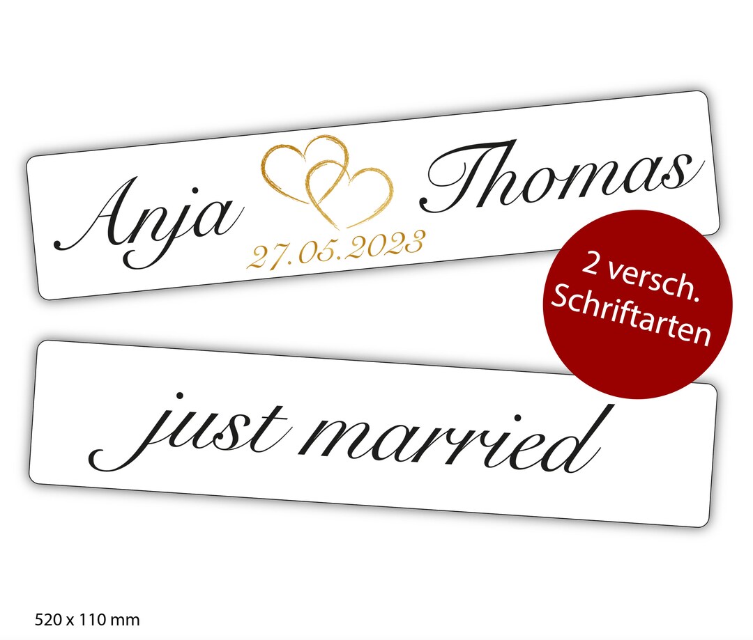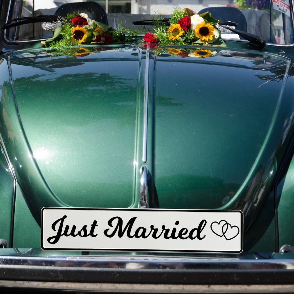 Just Married KFZ-Kennzeichen Hochzeit - 2 Stück Hochzeitsauto Deko | 520x110mm Aluminium