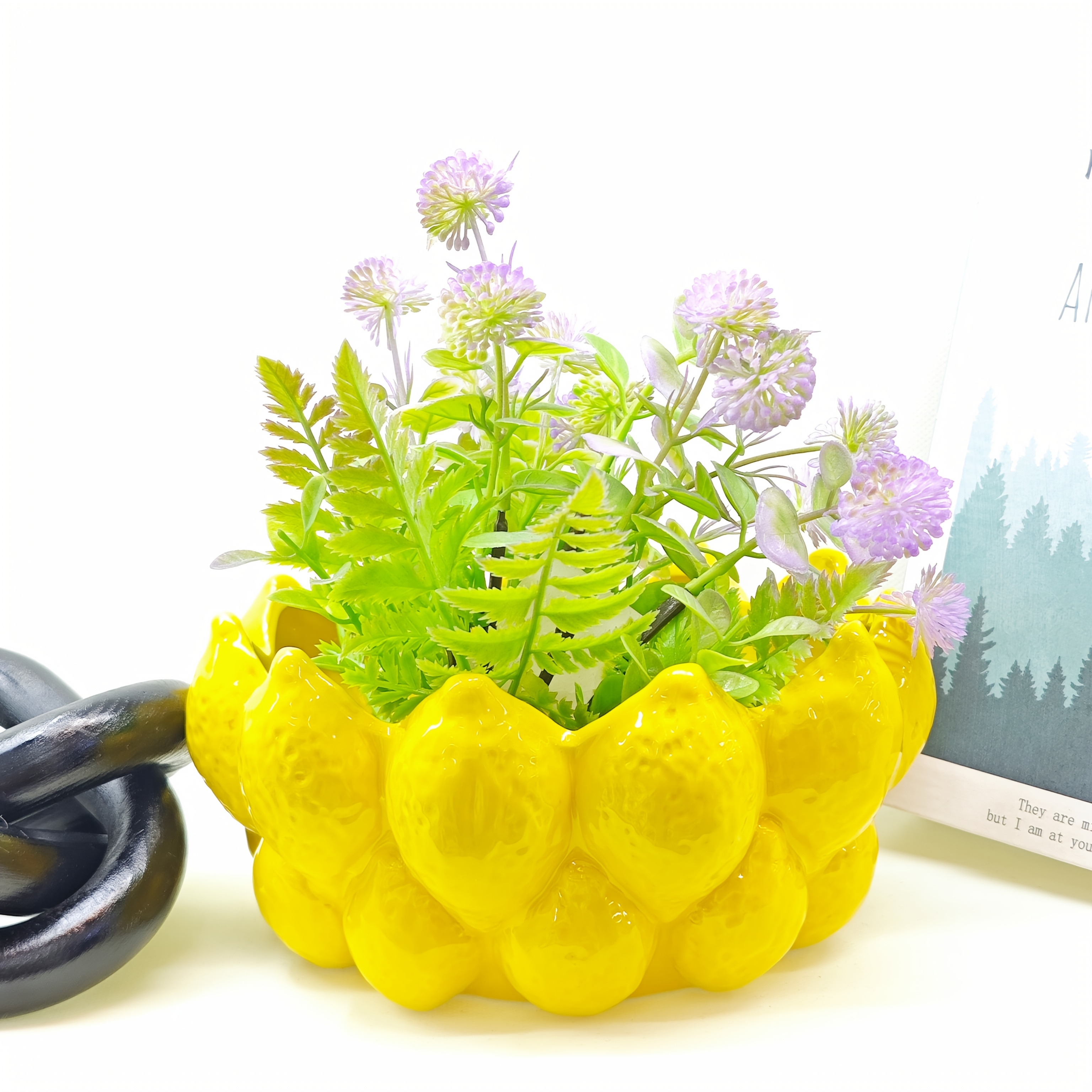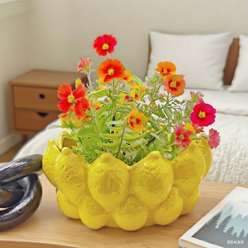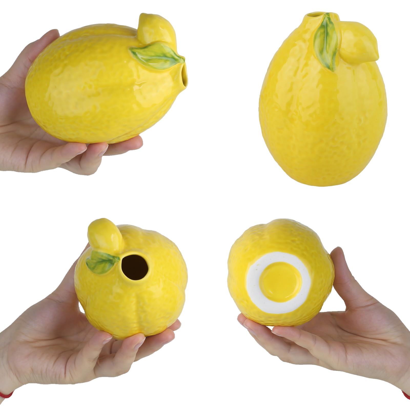 Bring frischen, sommerlichen Charme in dein Zuhause! Diese entzückende keramische Vase in Zitronenform ist ein absoluter Hingucker für jede Wohnung. Mit ihren Maßen von 18,5x7cm ist sie perfekt für den Couchtisch, das Büro, die Fensterbank oder den Balkon. Die lebendige gelbe Farbe und die naturgetreue Zitronenform verleihen jedem Raum sofort eine fröhliche, sommerliche Atmosphäre. Aus hochwertiger Keramik gefertigt, fühlt sich die Oberfläche glatt und angenehm an und ist bei sorgfältiger Handhabung lange haltbar. Ob mit frischen Blumen, eleganten Grünpflanzen oder solo als Deko-Objekt - diese Vase macht immer eine gute Figur. Perfekt als Geschenk für Freunde und Familie oder zur Aufhellung der eigenen vier Wände. Die zitronenförmige Vase verleiht deinem Wohnstil sofort mehr Persönlichkeit und Lebensfreude. Ein kleines Kunstwerk für alle, die es frisch und fröhlich mögen!