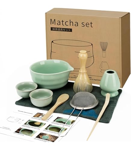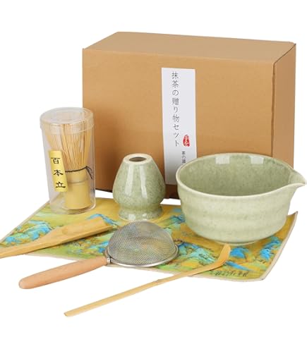 Matcha-Fans, dieses 7-teilige Set hat alles, was ihr für die perfekte Tasse braucht! Enthält: Matcha-Schüssel mit praktischem Ausguss, Bambus-Besen, Keramik-Besenhalter, Bambus-Löffel, Löffelhalter, Edelstahlsieb und Teetuch. Die Schüssel ist aus hochwertiger Keramik - blei- und cadmiumfrei, also absolut sicher! Der Ausguss verhindert Verschütten - super praktisch! Der Bambus-Besen ist mit Pflanzenöl behandelt - hält länger und macht schönen Schaum. Sieb für klumpenfreien Matcha - einfach Pulver sieben und genießen! Alles in harmonischen Farben - sieht einfach stylisch aus! Perfekt für Anfänger und Profis - mit dem Set kann nichts schiefgehen. Einfach Pulver rein, Wasser dazu, mit Besen schaumig schlagen - fertig ist der perfekte Matcha! Macht auch als Geschenk ne super Figur - ob zu Geburtstag, Weihnachten oder einfach so. Für alle, die gesund leben wollen: Matcha ist voller Antioxidantien! Einfach bestellen und die japanische Tee-Zeremonie nach Hause holen! Qualität ist top - alles gut verarbeitet. Sieht aus wie was Teures - ist aber erschwinglich. Einfach ausprobieren - du wirst Matcha lieben!