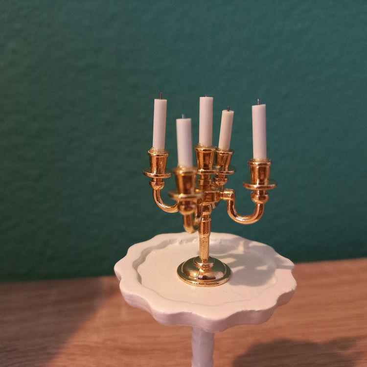 Wow, dieser Miniatur-Kerzenständer ist ja richtig niedlich! Im Maßstab 1:87 perfekt für Puppenhäuser, Modelleisenbahnen oder Dioramen. Mit goldenem Finish sieht total edel aus. Die LED-Beleuchtung macht's besonders gemütlich - verbraucht kaum Strom und wird nicht heiß. Maße: 7,5x3,5cm - also schön klein aber detailreich. Funktioniert mit 3V oder 12V - rotes Kabel ist Plus, blaues Minus. Super für Sandtisch-Landschaften, Garten-Miniaturen oder einfach als Deko im Regal. Macht sich auch super als Geschenk für Modellbau-Fans. Einfach ein süßes Detail das deine Miniatur-Welt zum Strahlen bringt!