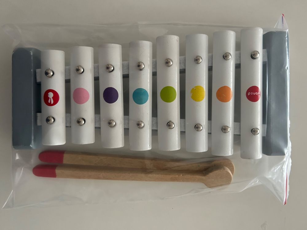 Oh wie süß! Dieses Xylophon ist perfekt für die Kleinen. Mit 8 verschiedenen Tönen und diesen beiden praktischen Schlägeln. Aus Holz, Kunststoff und Metall - super stabil und hält auch mal was aus. Nur 24,7x10,7x4cm groß, also genau die richtige Größe für Kinderhände. In diesem schicken Khaki-Farbton sieht es auch noch total stylisch aus. Die Töne sind richtig klar und schön - kein Krach sondern echte Musik! Perfekt für die musikalische Früherziehung, für zu Hause oder den Kindergarten. Leicht genug dass die Kids es überall mitnehmen können. Fördert die Kreativität und macht einfach riesig Spaß. Ob alleine oder mit Freunden - damit können die Kleinen stundenlang spielen. Einfach mal ausprobieren und sehen wie begeistert die Kinder sind! Qualität die lange hält und immer wieder für strahlende Augen sorgt.