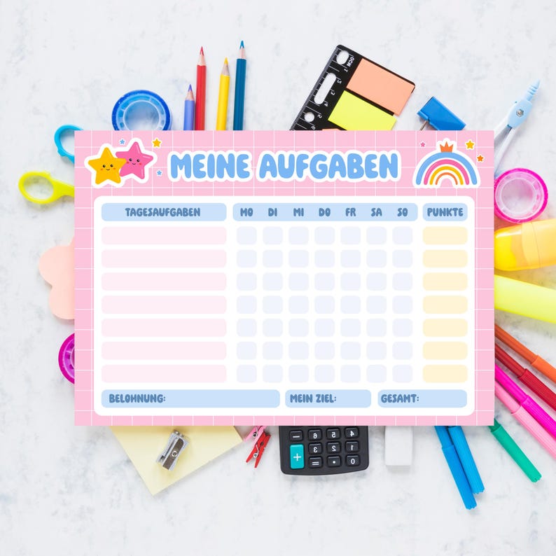 Mit dem beiliegenden Stift trägst du Fächer, Zeiten und Termine ein - wenn sich was ändert, einfach wegwischen und neu. Perfekt fürs Kinderzimmer oder überm Schreibtisch. Die bunten Motive machen richtig Laune auf die Schule. Macht sich auch super in der Schultüte! DIN A4 groß - genau richtig für kleine Hände.