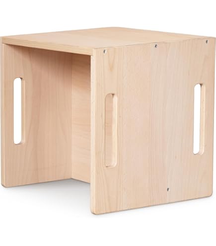 Eltern, dieser Wendehocker wächst mit eurem Kind mit! Aus robustem Buchen-Multiplex in deutscher Handarbeit gefertigt. Durch cleveres Wenden ergeben sich 4 Sitzhöhen: 15cm, 20cm, 25cm und 35cm.